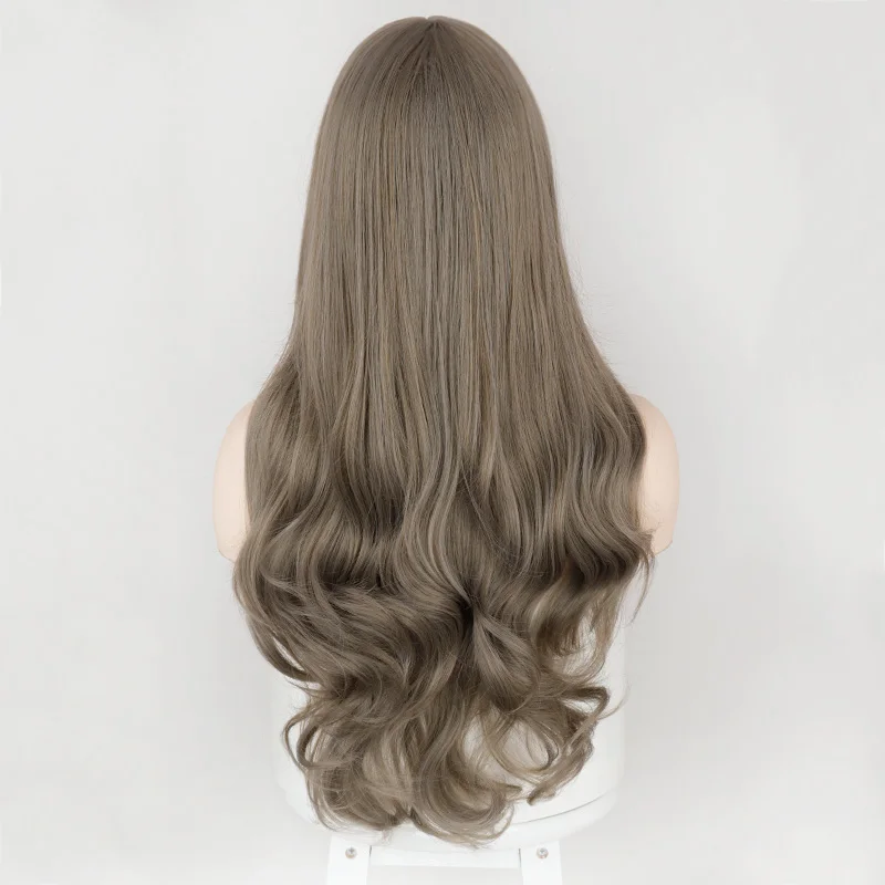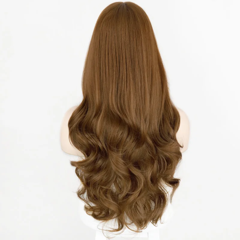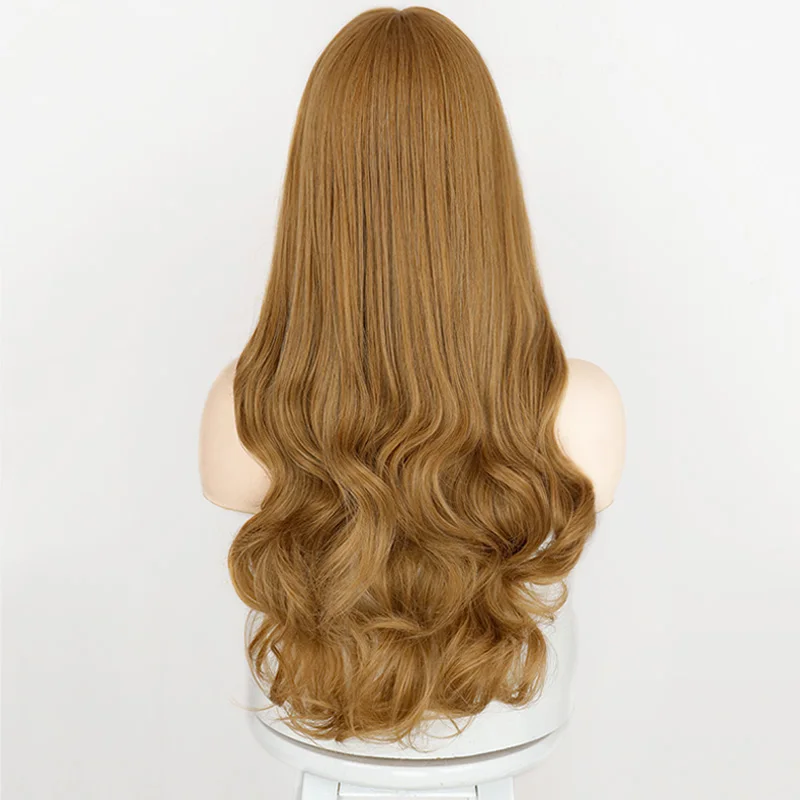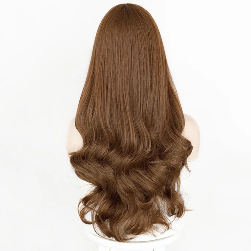 Длинные волнистые синтетические парики с челкой для женщин, натуральные волосы, коричневые светлые парики для косплеяХэллоуина, искусственные волосы