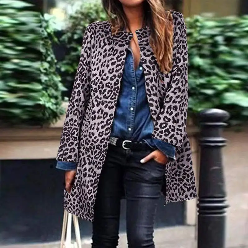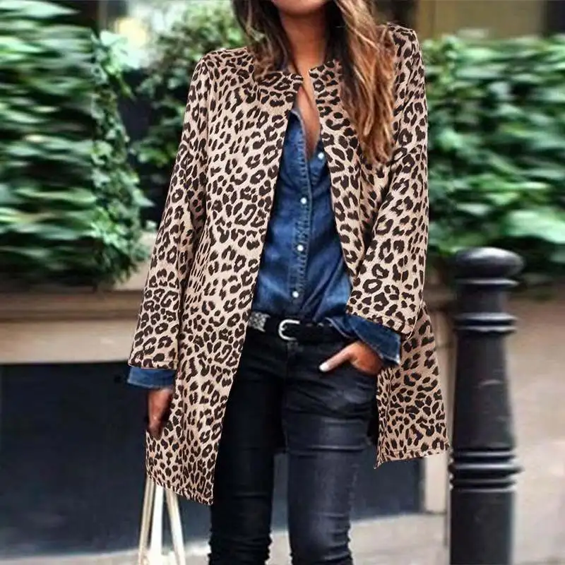 Куртка ZANZEA женская с леопардовым принтом, пальто с длинным рукавом, ветровка, открытый кардиган, верхняя одежда, топ, осень 2021