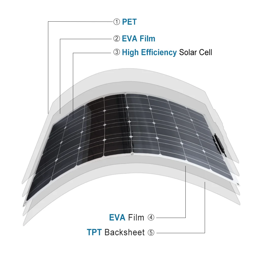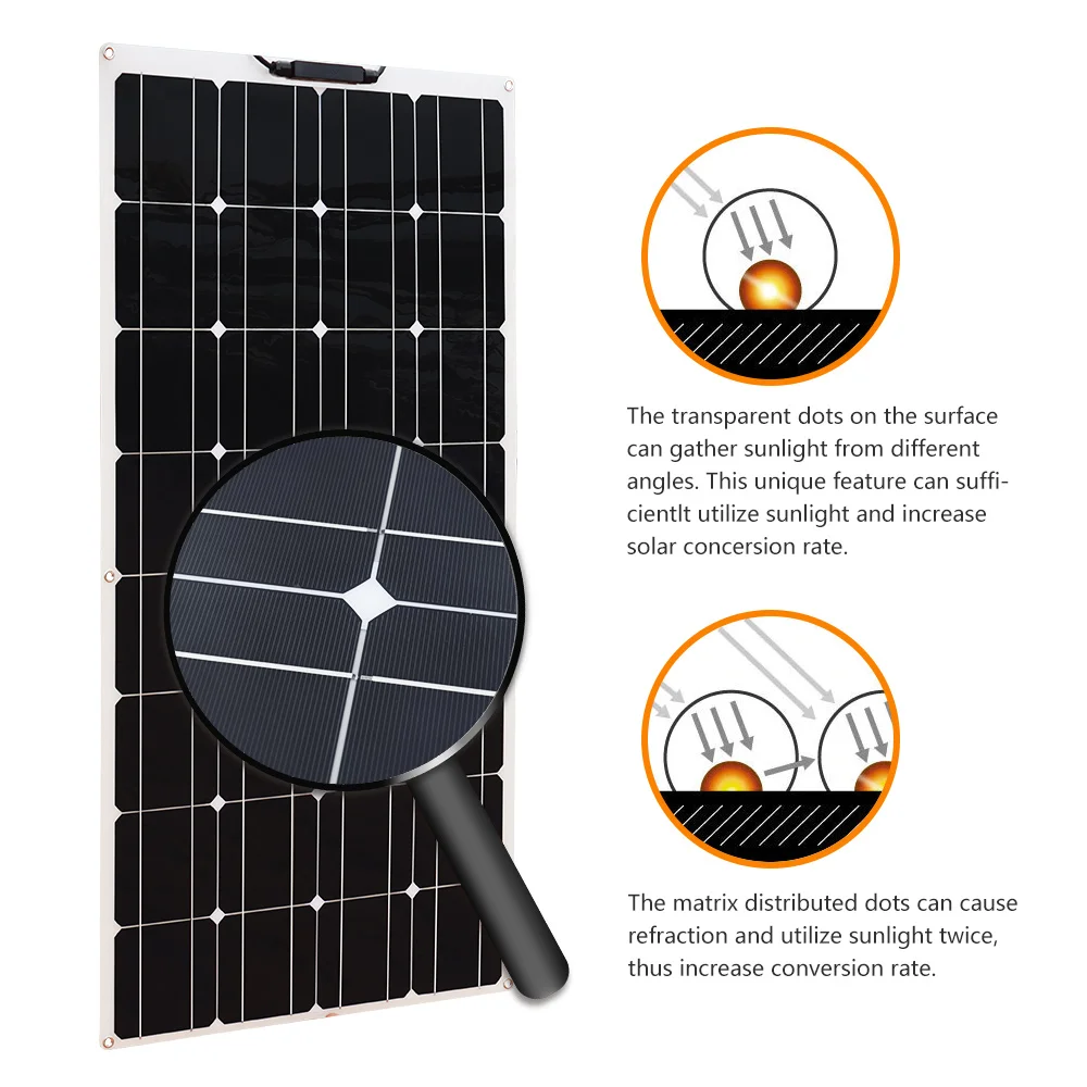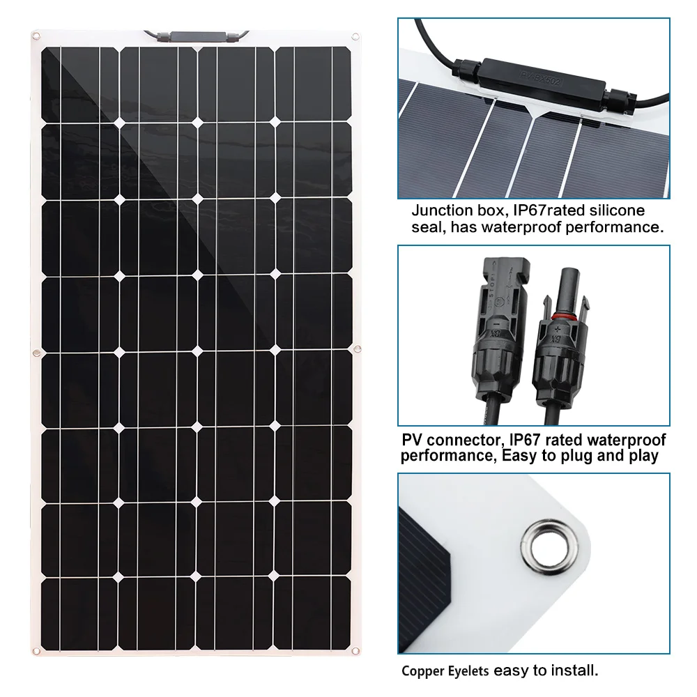 Гибкая солнечная панель, 100 Вт, 18 в, 12 В, монокристальная, силиконовая, водонепроницаемая для дома, улицы, зарядное устройство для аккумулятора, RV, лодки, кемпинга, пешего туризма, автомобиля
