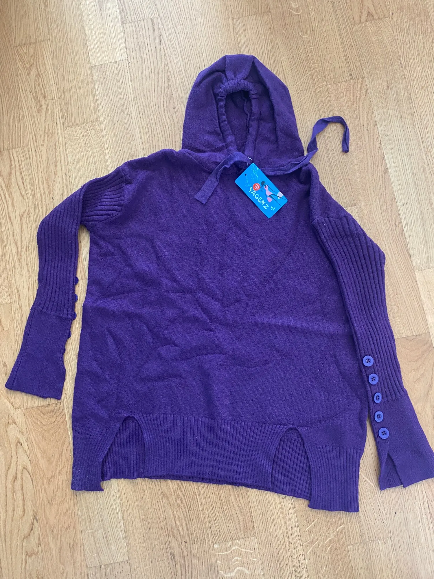 Хороший свитерок. Взяла дочке на подарок. Думаю, ей понравится. Сшит аккуратно, рукава интересные, капюшон хороший. Когда ветер, я думаю будет хорошо прикрывать голову.