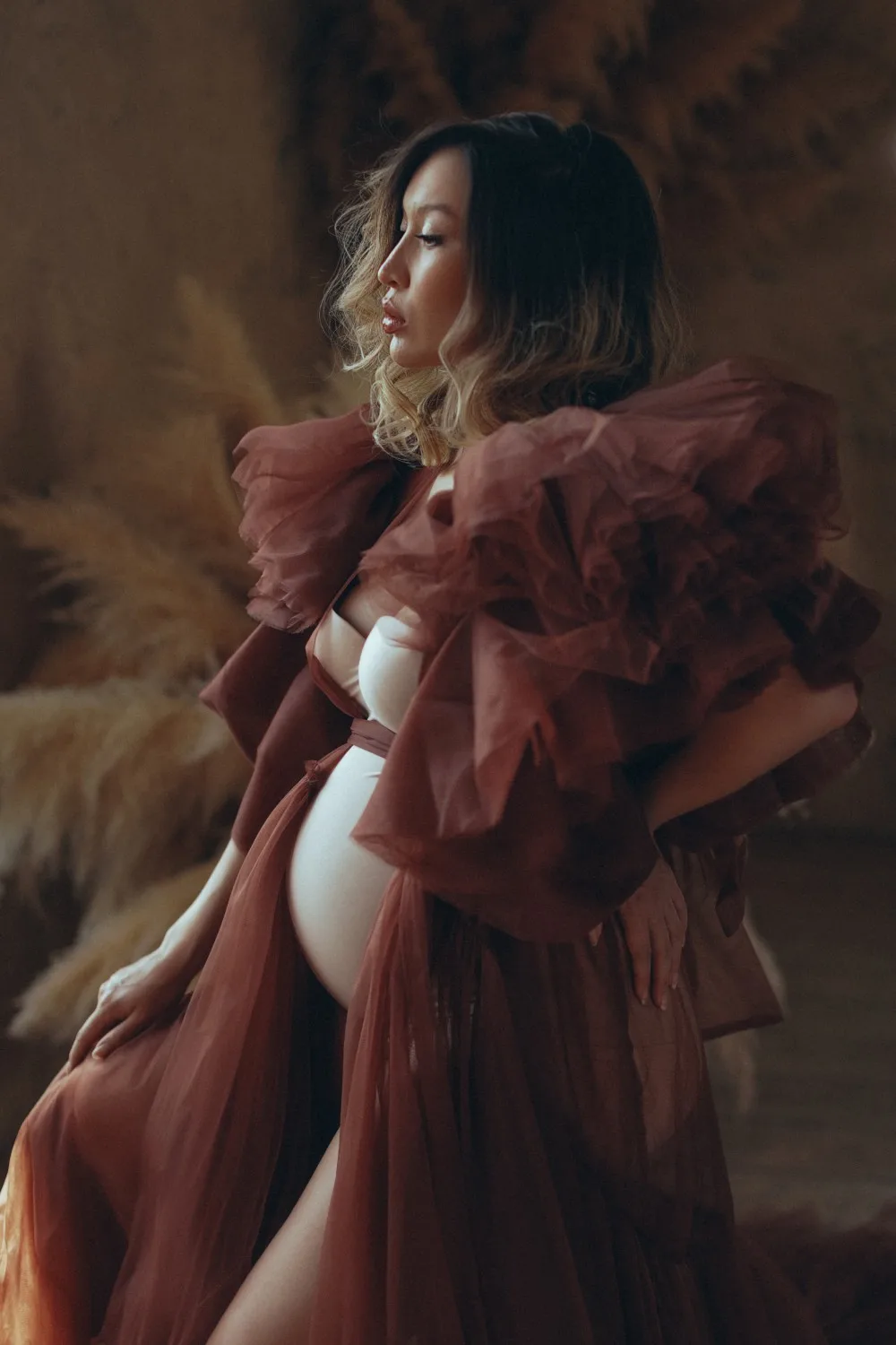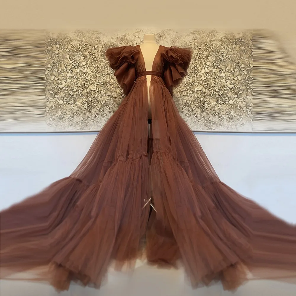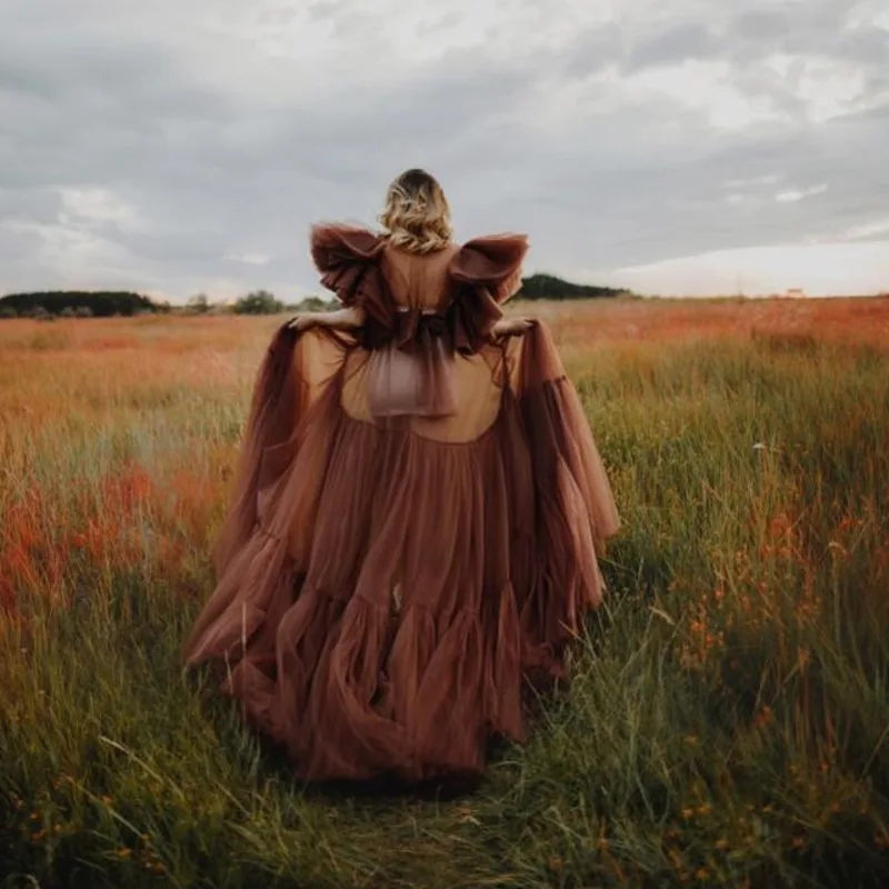 Пикантные Свадебные халаты Mingli Tengda для беременных бордовые с оборками с коротким рукавом Тюлевая прозрачная накидка для вечеринки для фотосессии шаль на заказ