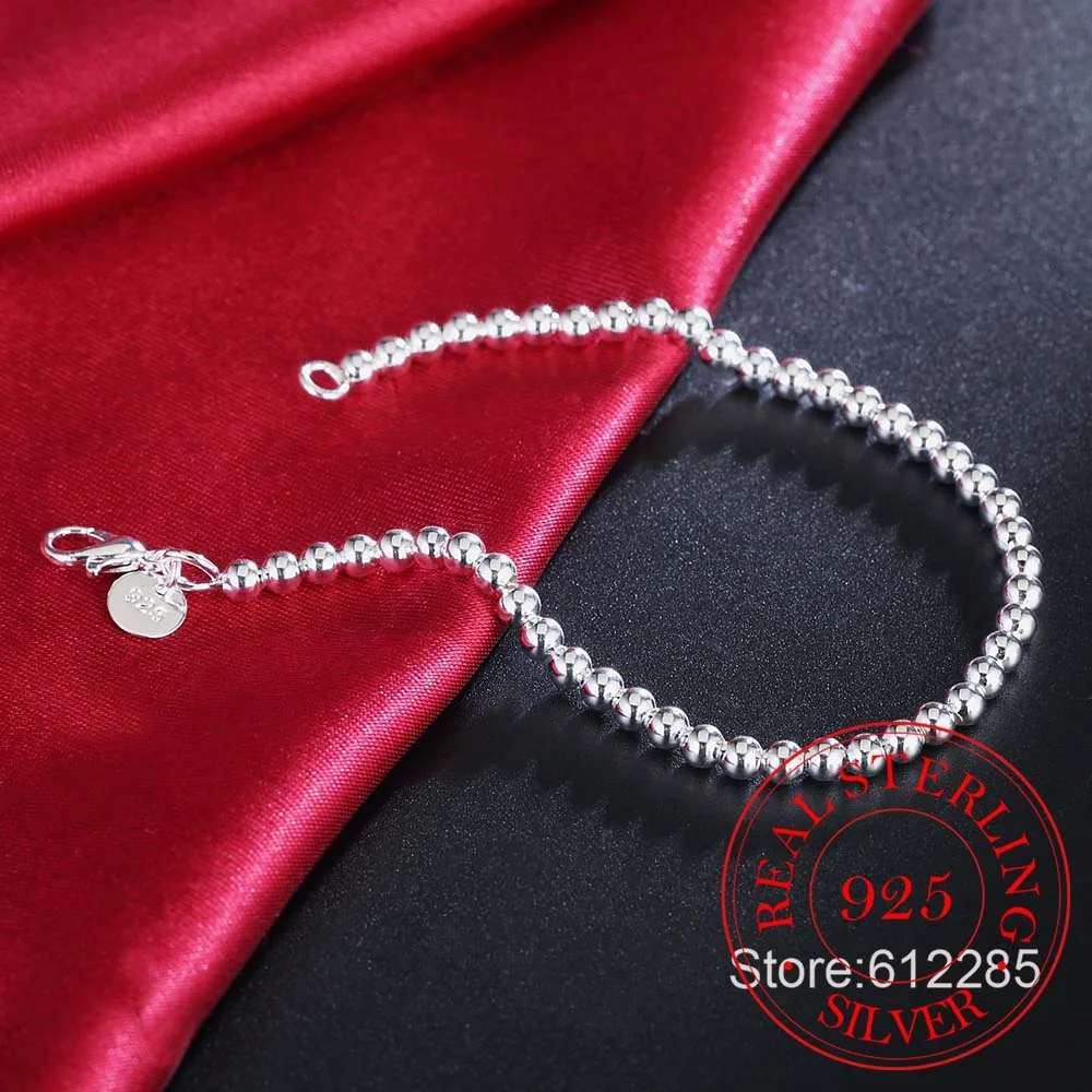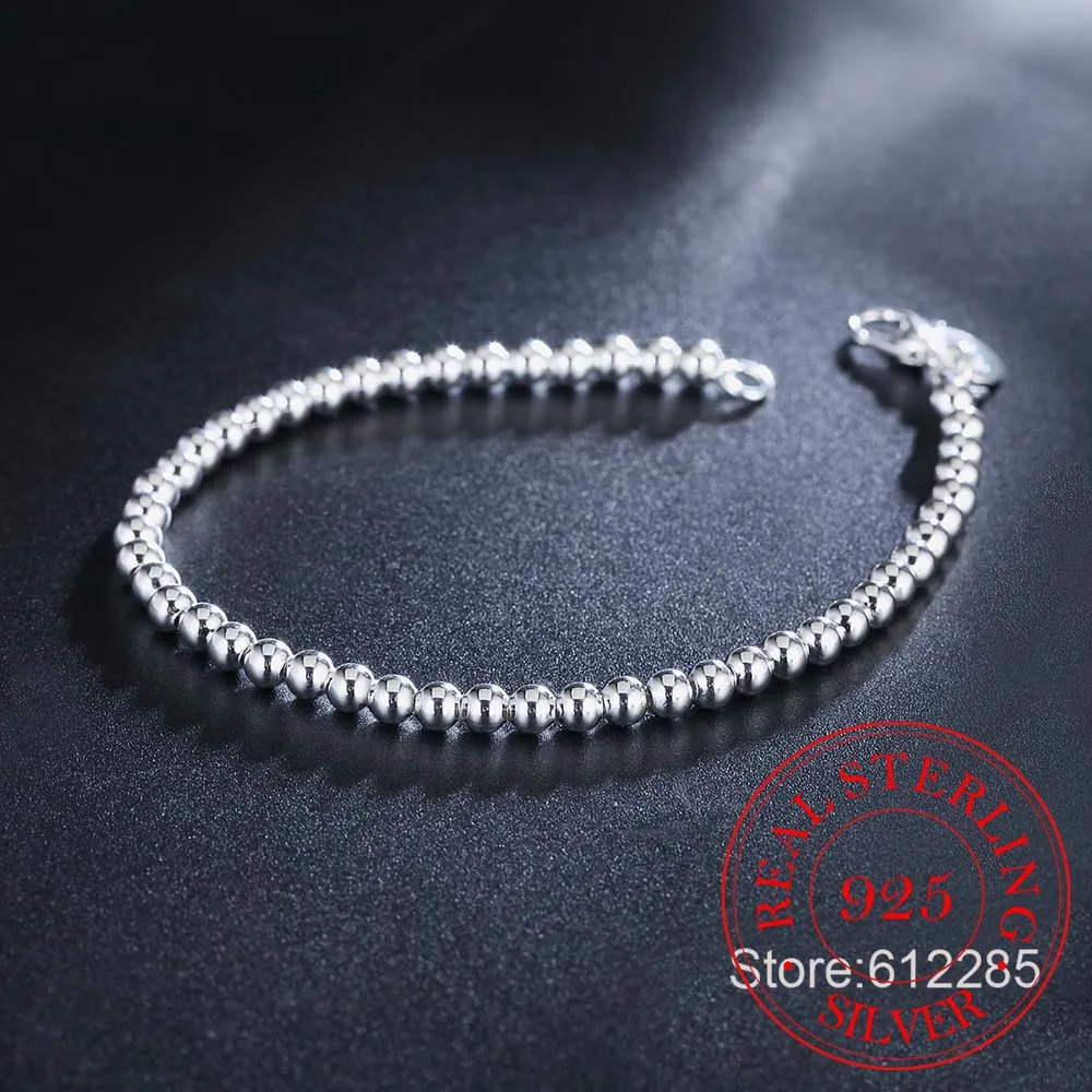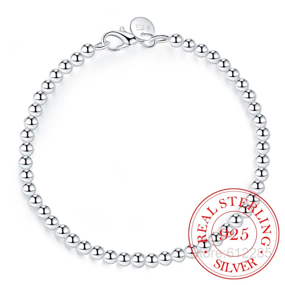 Браслет-цепочка Женский, из серебра 100% пробы, с бусинами 4 мм, 20 см, 925