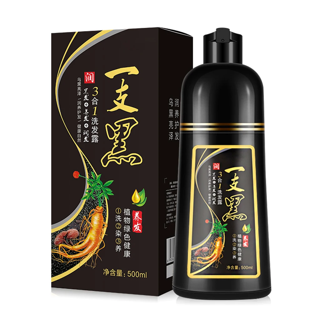 Шампунь для стойких черных волос 500 мл, Органическая натуральная быстрая краска для волос, растительная эссенция для черных волос, шампунь для мужчин и женщин