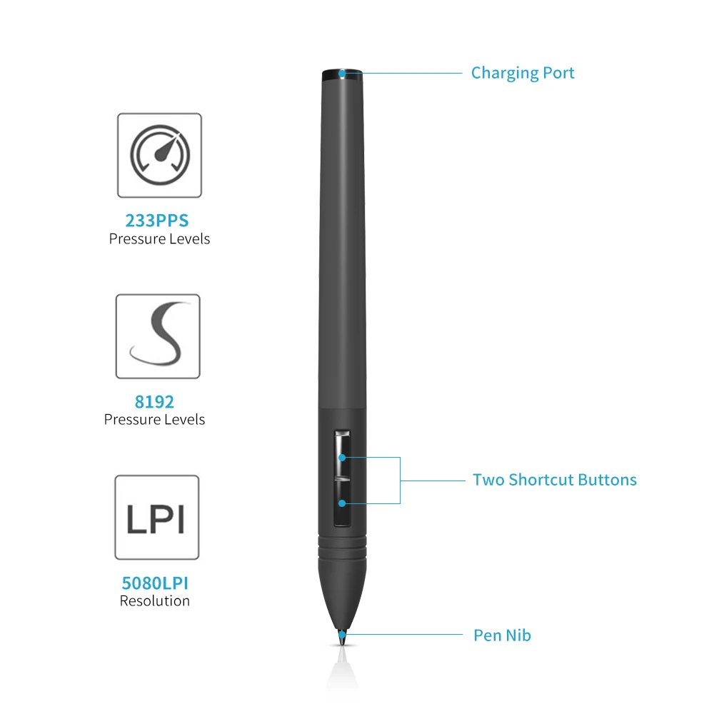 Huion PEN80 перезаряжаемая цифровая ручка, электромагнитная резонансная ручка с 2 программируемыми кнопками для нового 1060PLUS графического планшета