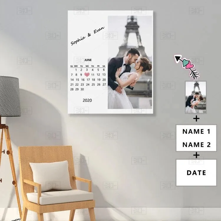 Картина на холсте с принтом на заказ фото и дата и имя календарь постер с памятью настенные художественные фотографии для гостиной подарок