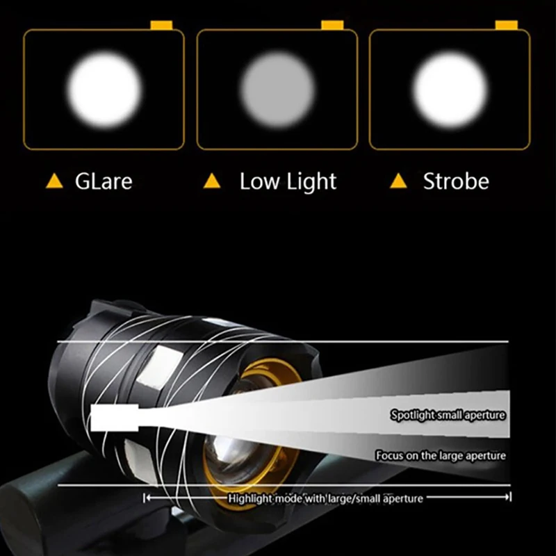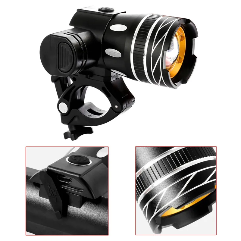 Велосипедный передний фонарь T6, регулируемый светодиодный светильник с защитой от дождя, 3 режима, зарядка через USB, зуммируемый передний светодиодный фонарь для велосипеда, налобный фонарь