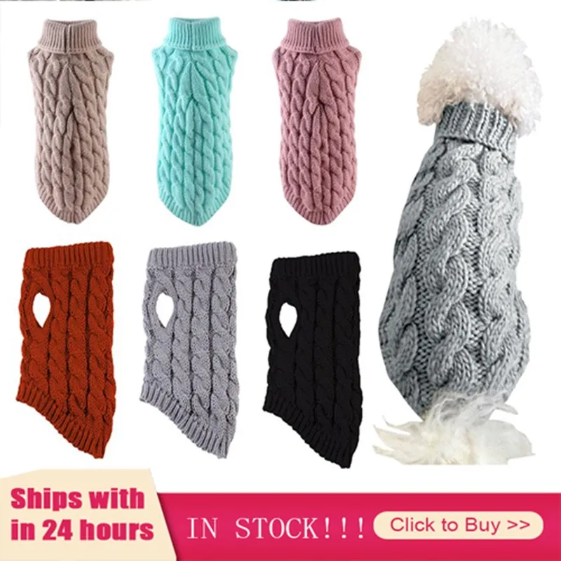Зимняя теплая вязаная одежда для собак, теплый джемпер, свитер для ...