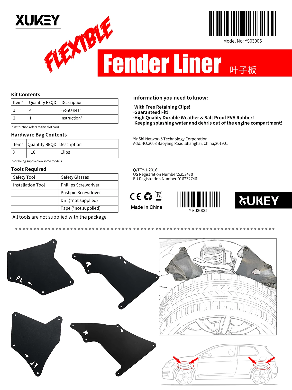 Особые характеристикиFender Liners Splash Shield Guards Mud Flaps Apron Seal Skirt