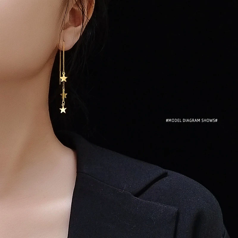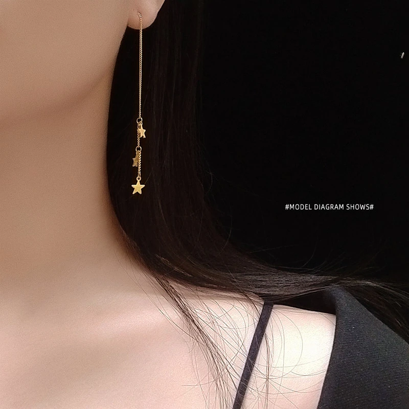 Длинная цепь, свисающие серьги для женщин, серьги со звездами длинн...
