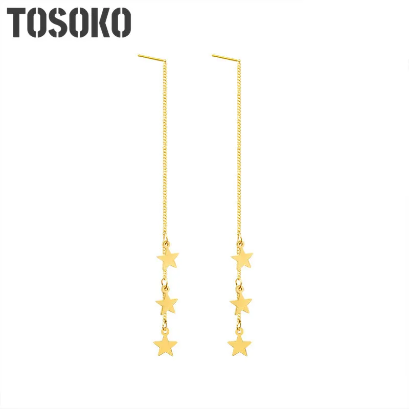 Серьги TOSOKO из нержавеющей стали с трехслойными пятиконечными звездами, серьги со звездами, ювелирные изделия для женщин BSF278
