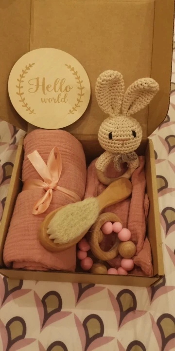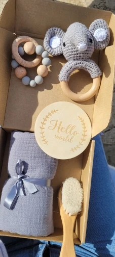 Очень милый набор. Расческа мягкая, натуральна. Грызунок очень приятный. Слоненок-погремушка качественно сделан. Одеяльце ожидала чуть больше, но новорожденному хватит. В целом довольна. Отправка очень быстрая. С продавцом не общалась