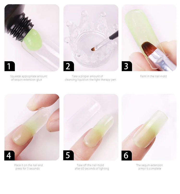 4. Используйте ручку для фототерапии, чтобы равномерно распределить клей по ногтевой форме.
