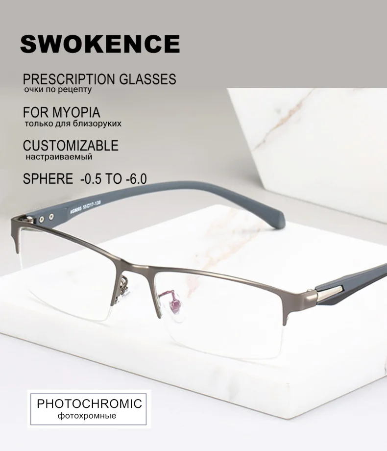 SWOKENCE фотохромные Рецептурные очки для близоруких-0,5 до-6,0 по индивидуальному заказу Для женщин Мужская и Женская Половина металлический каркас, которые могут изменить свой цвет глаз F075