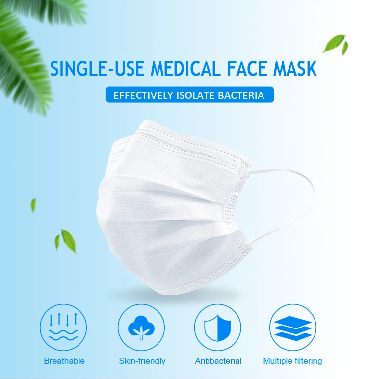 Маска медицинская хирургическая, 3-слойная, из нетканого материала