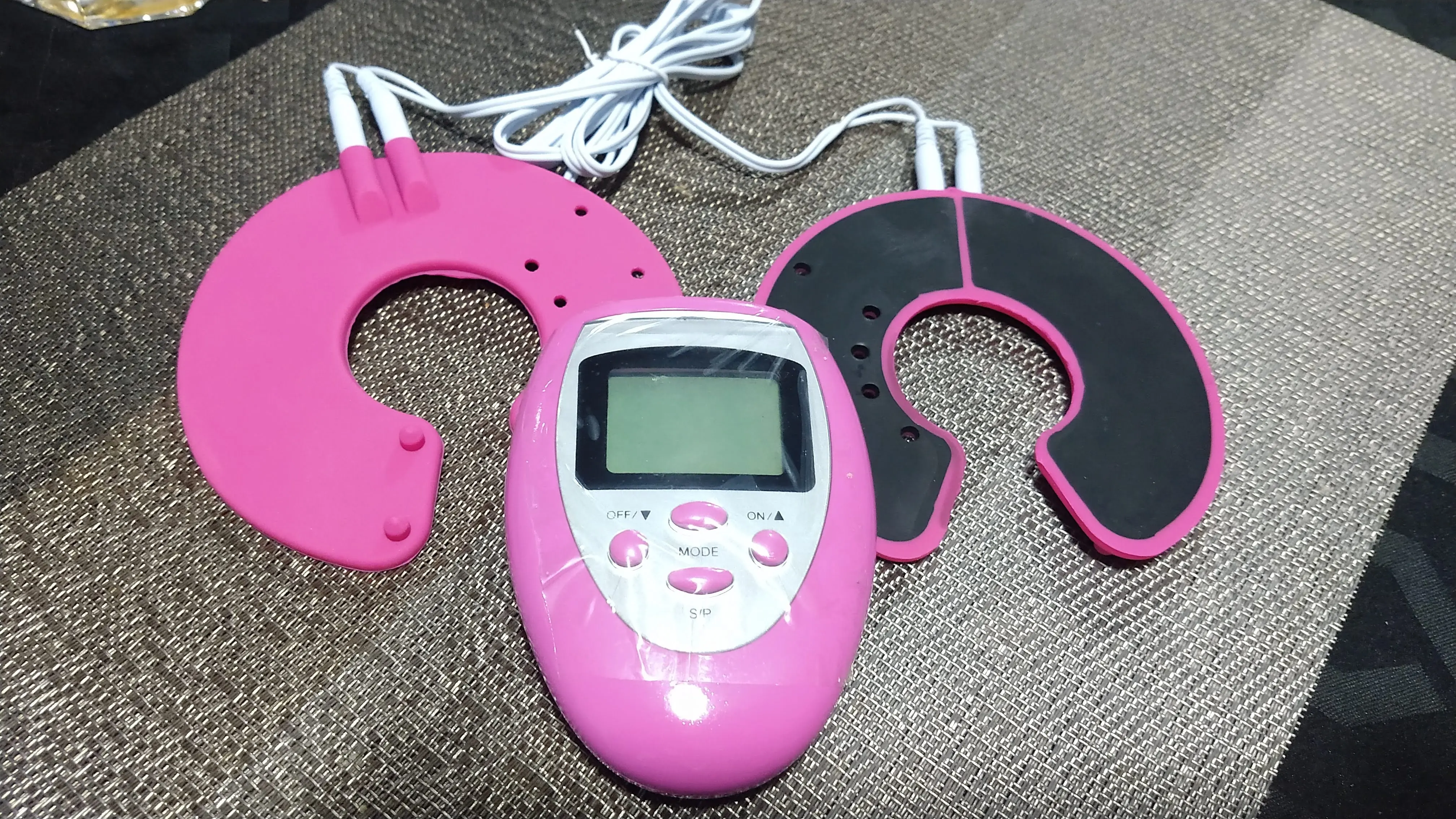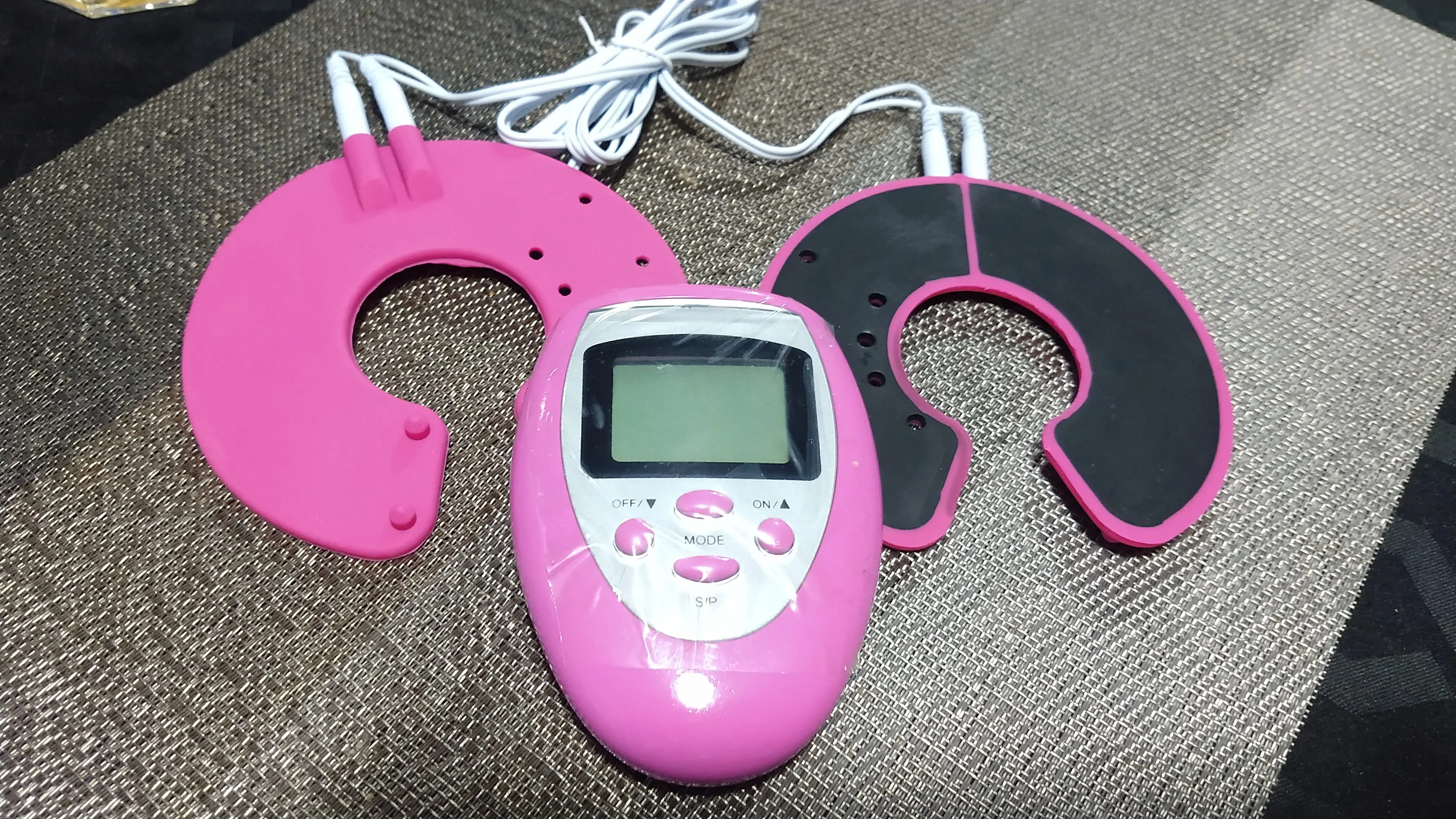 ну....миостимулятор....не очень удобный,только в лифчик подкладыфвать....током стимулирует мышцы груди...но у меня одна из двух накладок плохо проводит разряды....
