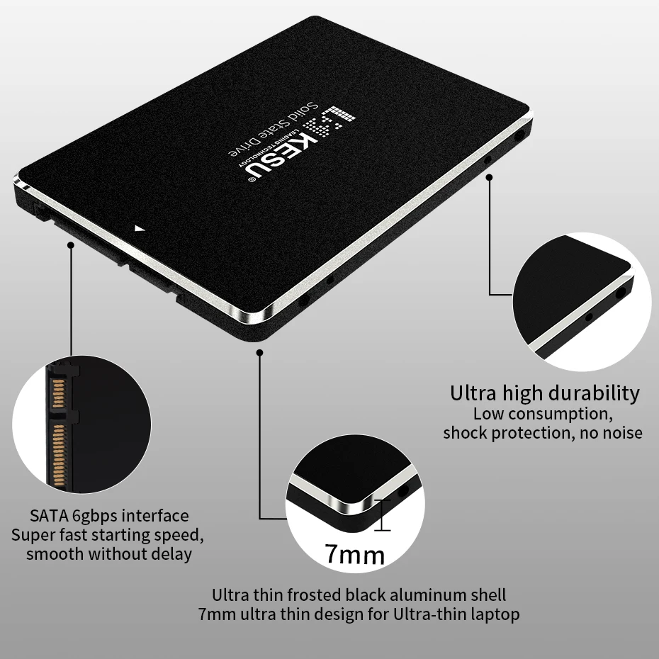 Твердотельный накопитель KESU SSD 512 ГБ, 1 ТБ, 2,5 дюйма, SATA III, внутренний SSD 128 ГБ, 256 ГБ, жесткий диск для настольного ПК, ноутбука, металлический чехол