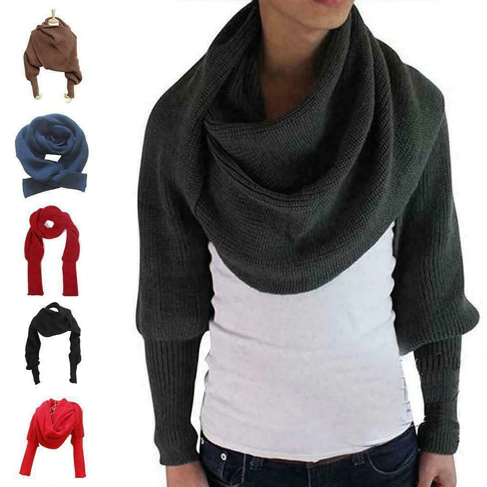 Зимний мягкий теплый вязаный Однотонный свитер унисекс для женщин и мужчин шарф с рукавом накидка шаль шарфы 240x50 см