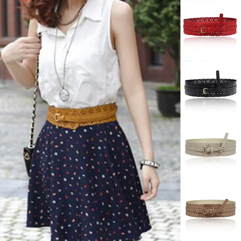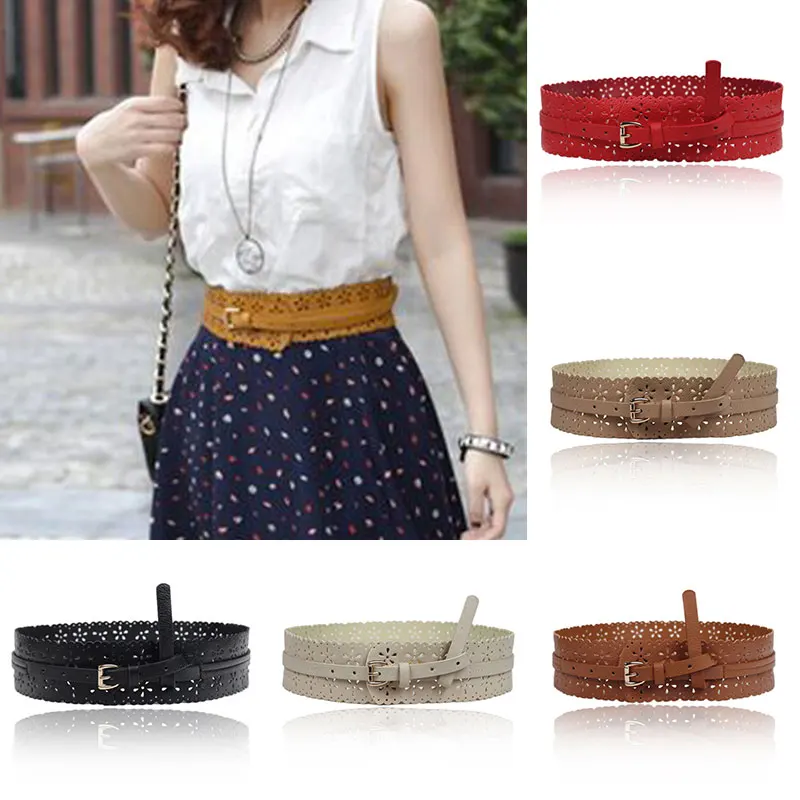 Ремень женский в винтажном стиле, модный широкий пояс с ажурным цветочным узором, с пряжкой, для платьев, пальто