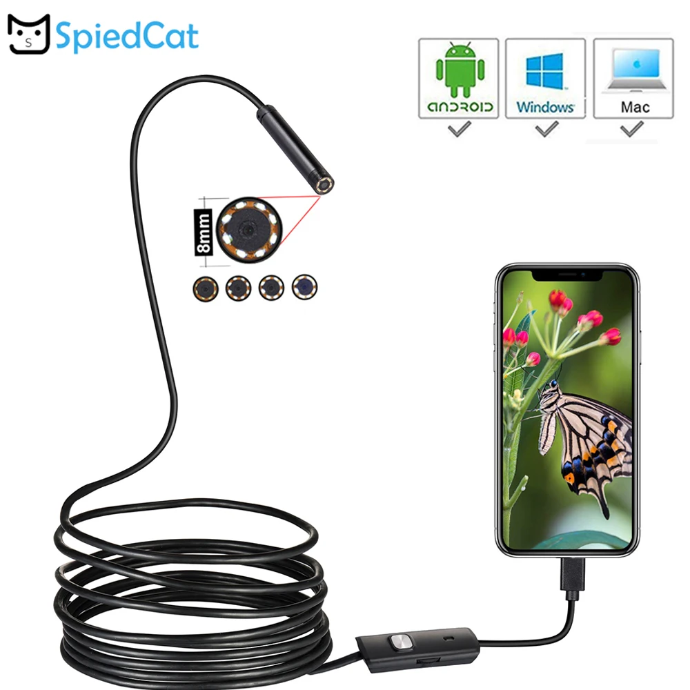 SPIED CAT 8 мм мини-объектив 6 светодиодный эндоскоп MicroUSB 1 м 5 м 10 м мягкий кабель змеиная машина ремонт труб осмотр Android бороскоп камера