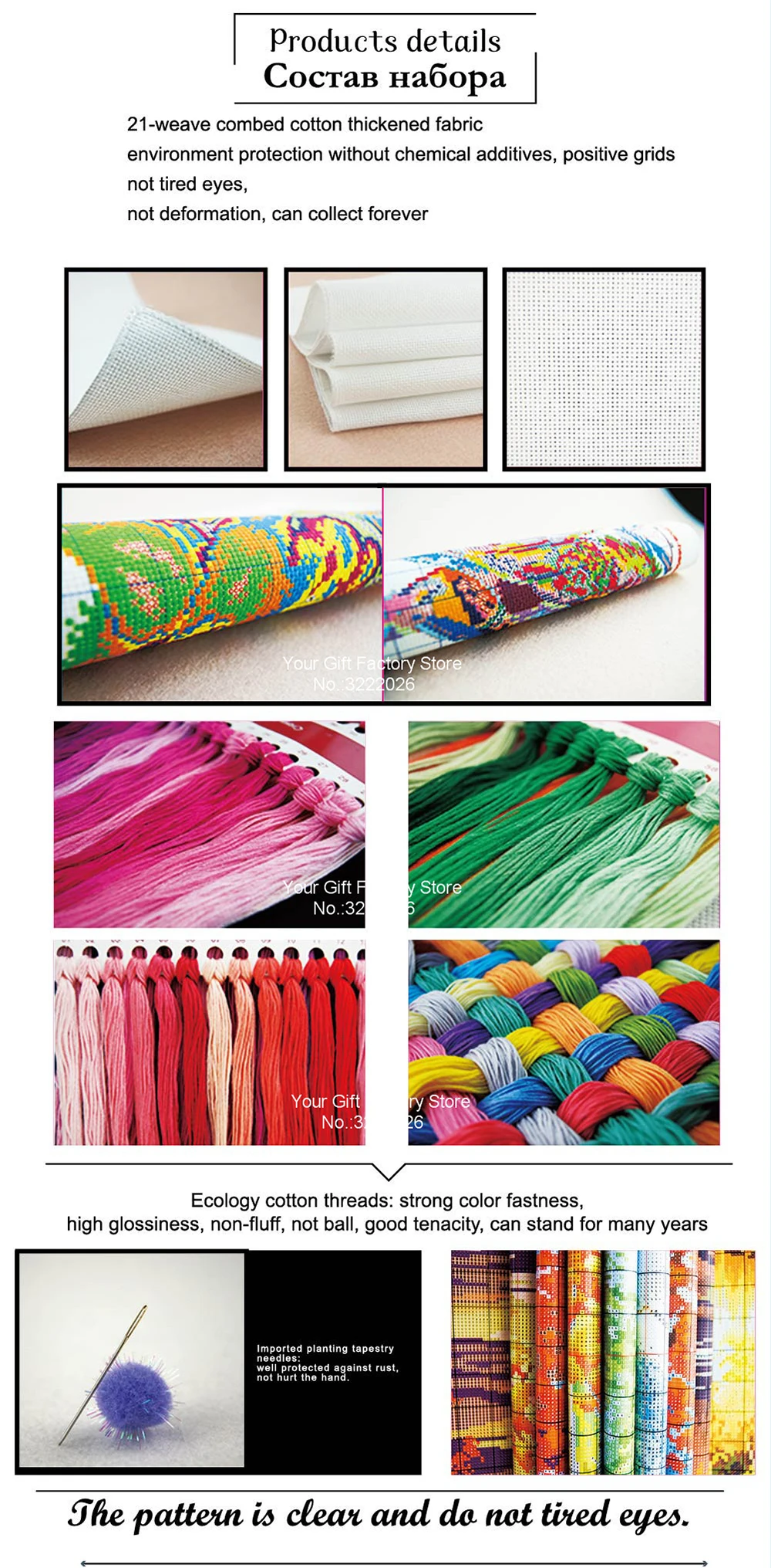 • Штампованная ткань (11CT и 14CT) и Счетный холст (14CT) .