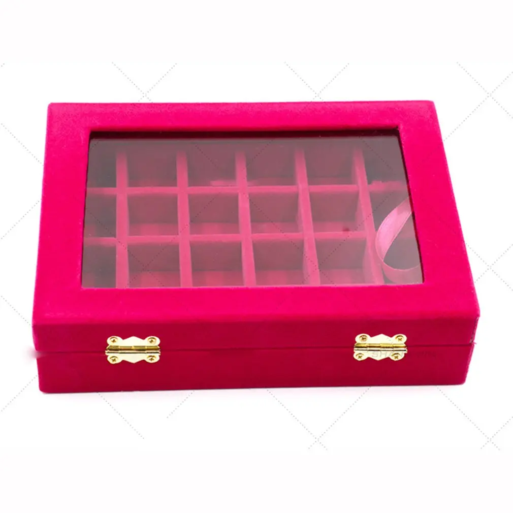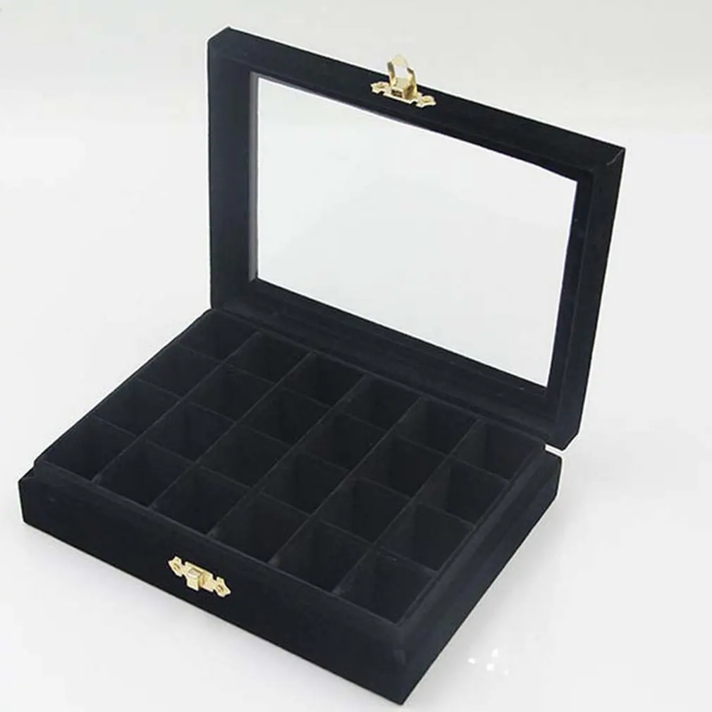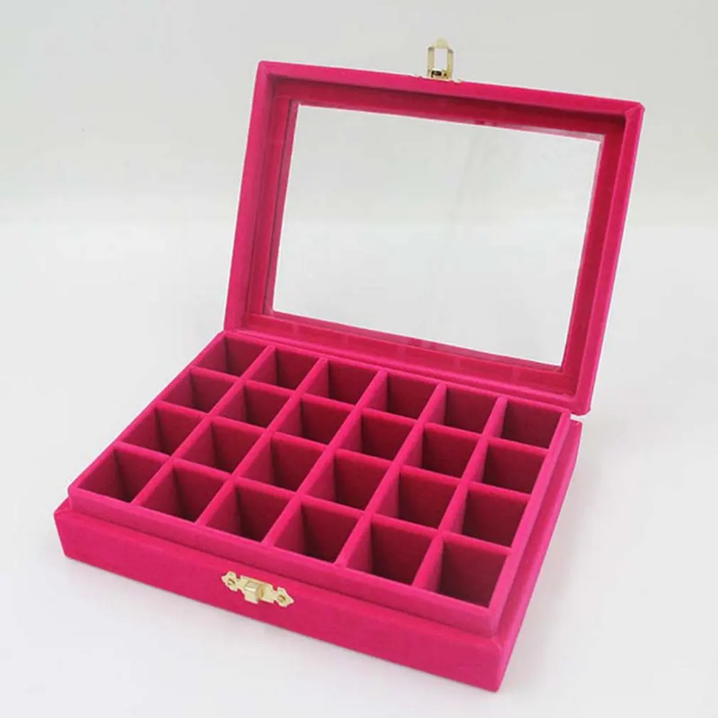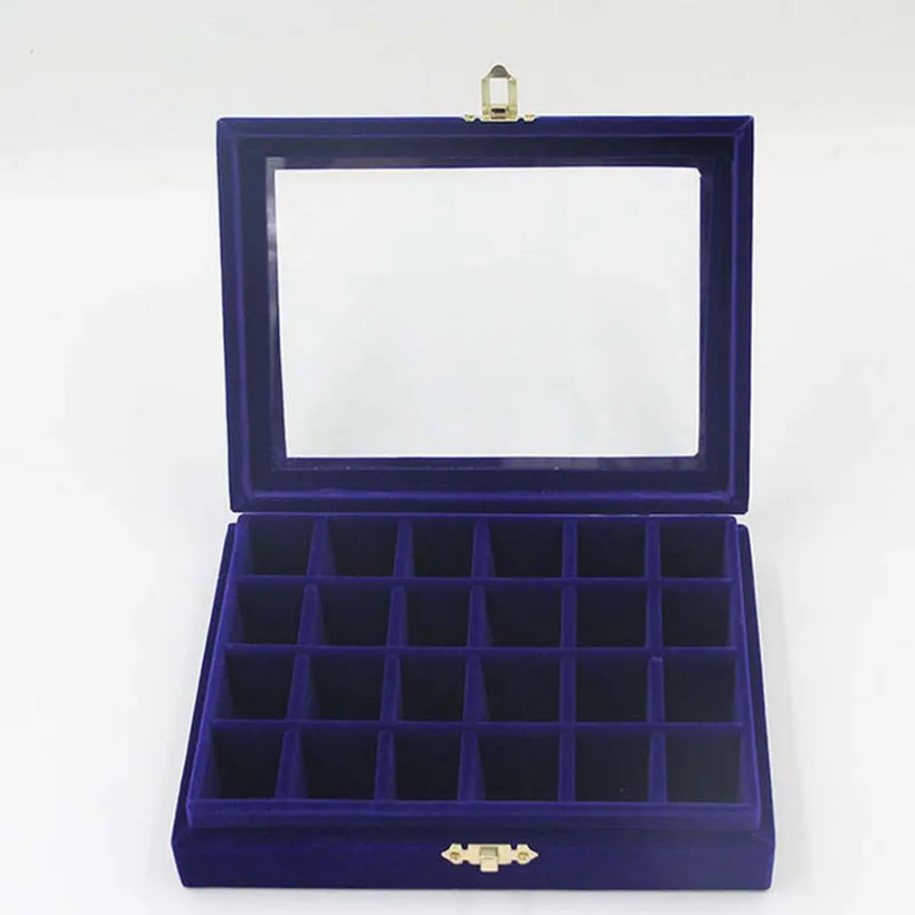 Non-String Золотая Одиночная Пряжка 24 Маникюр для ногтей сетка коробка ювелирных изделий Кольцо Серьги Коробка ювелирных изделий фланель Дисплей Коробка для хранения Организатор Горячая