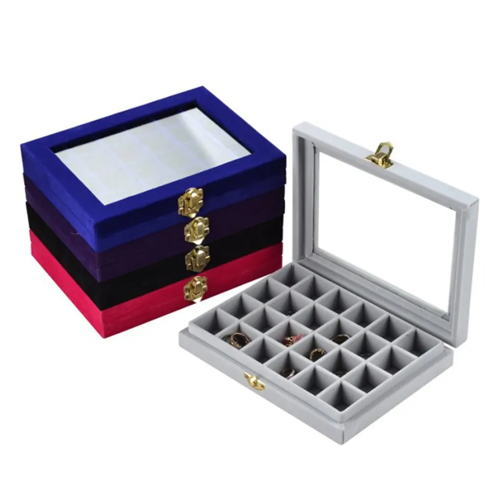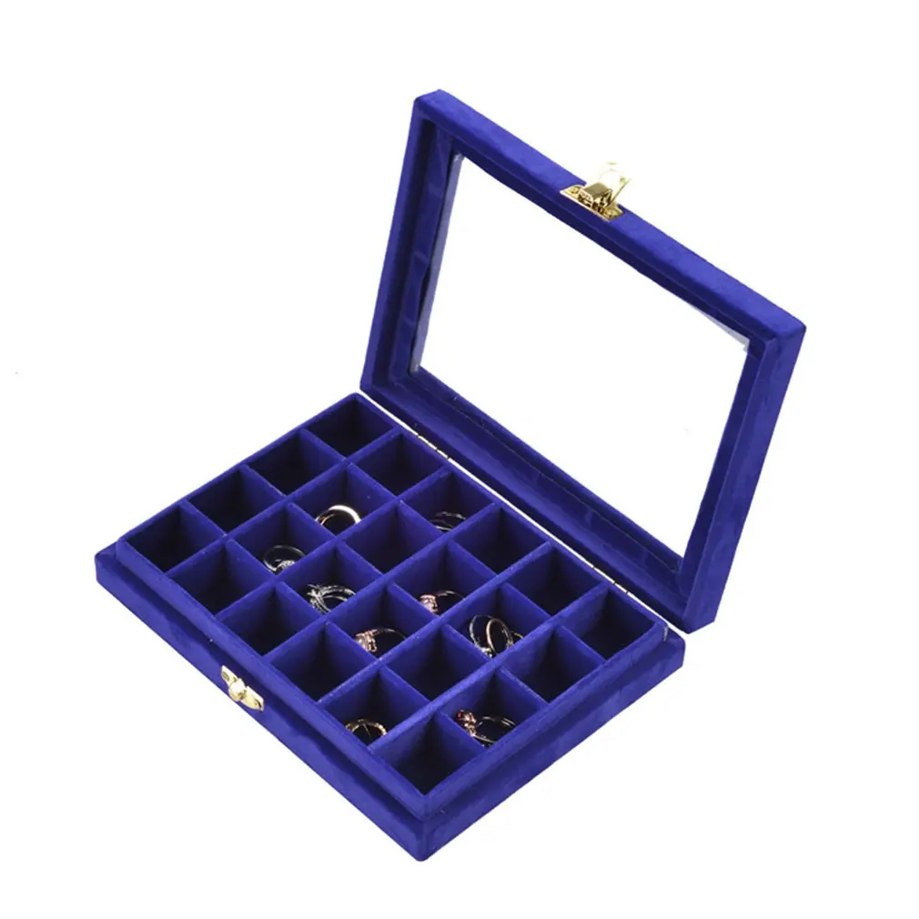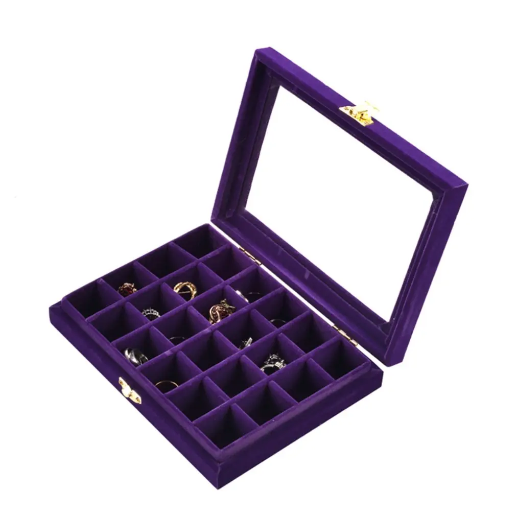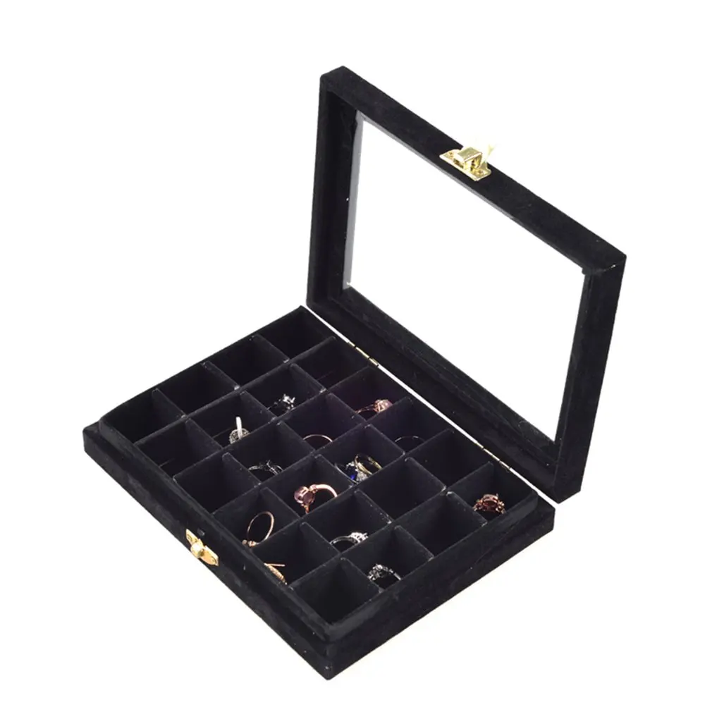 Non-String Золотая Одиночная Пряжка 24 Маникюр для ногтей сетка коробка ювелирных изделий Кольцо Серьги Коробка ювелирных изделий фланель Дисплей Коробка для хранения Организатор Горячая