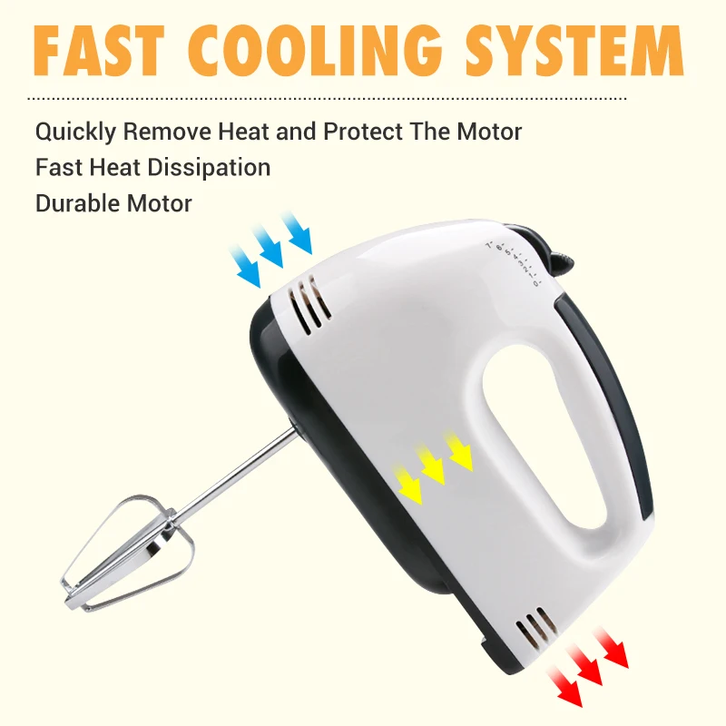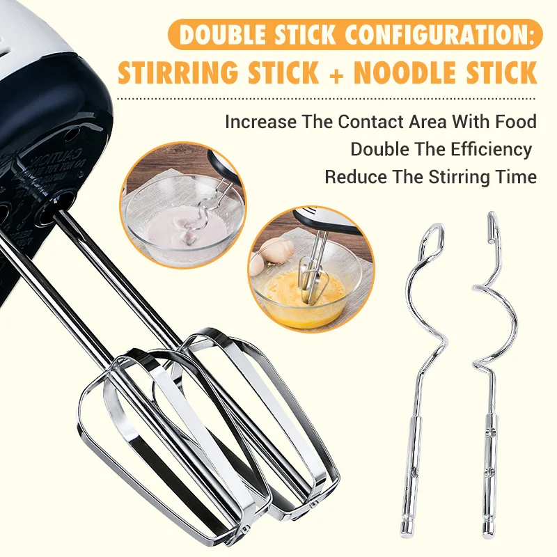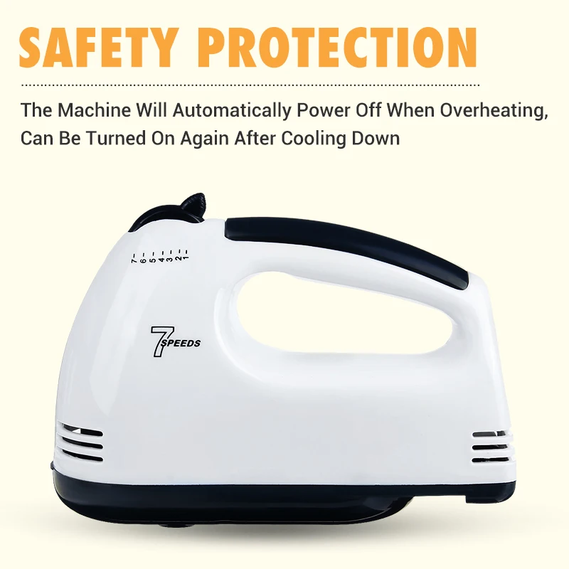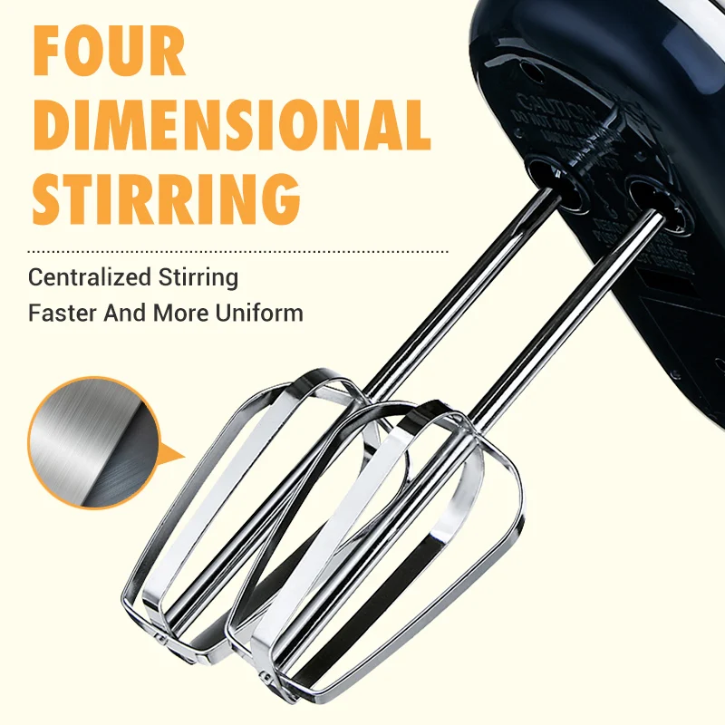 1.7 скоростей:Низкая, средняя или высокая скорость управления позволяют быстро смешивать, смешивать или взбивать яичные белки, тесто для торта, тесто для печенья, взбивать крем и многое другое одним касанием кнопки