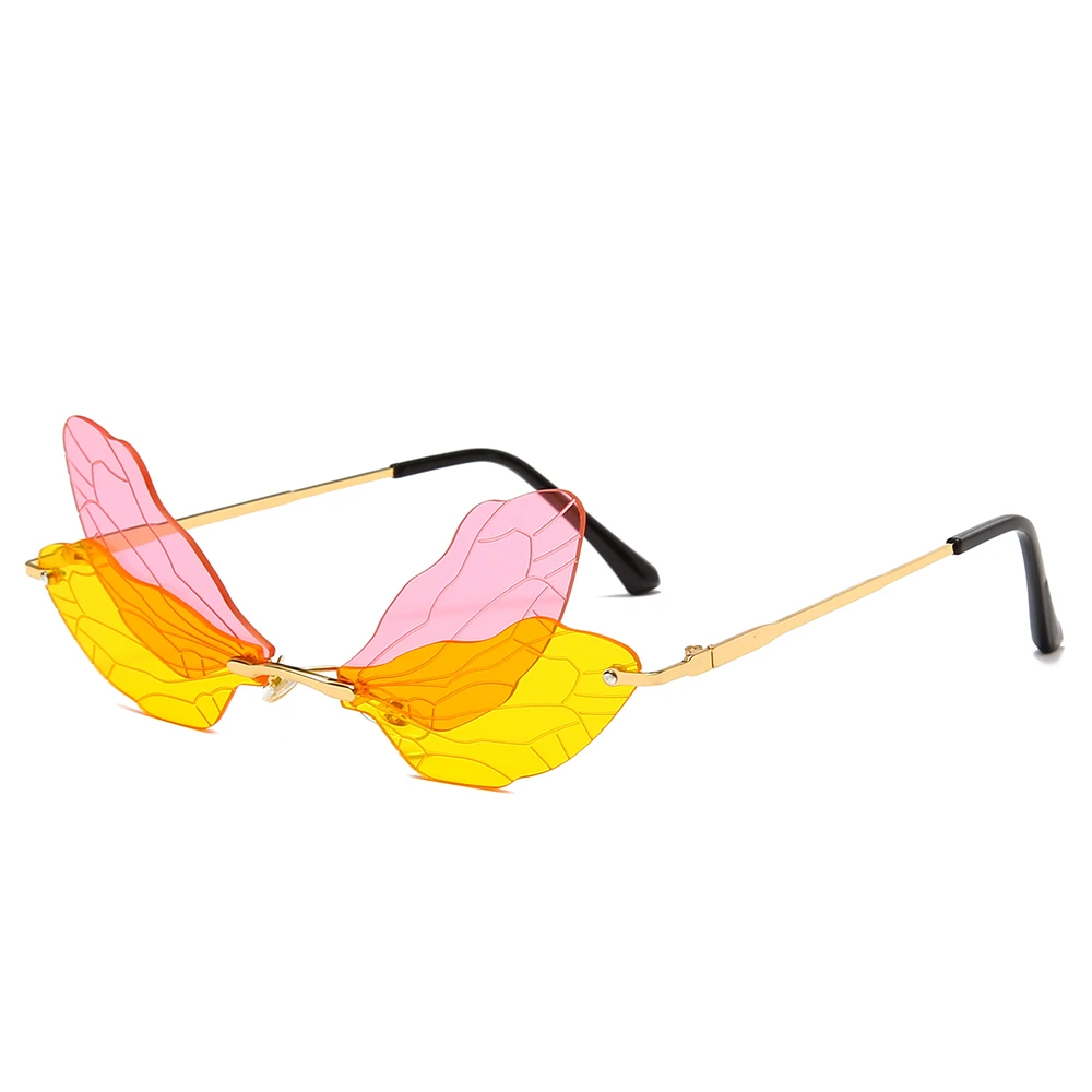 Солнцезащитные очки женские, без оправы, с металлической бабочкой