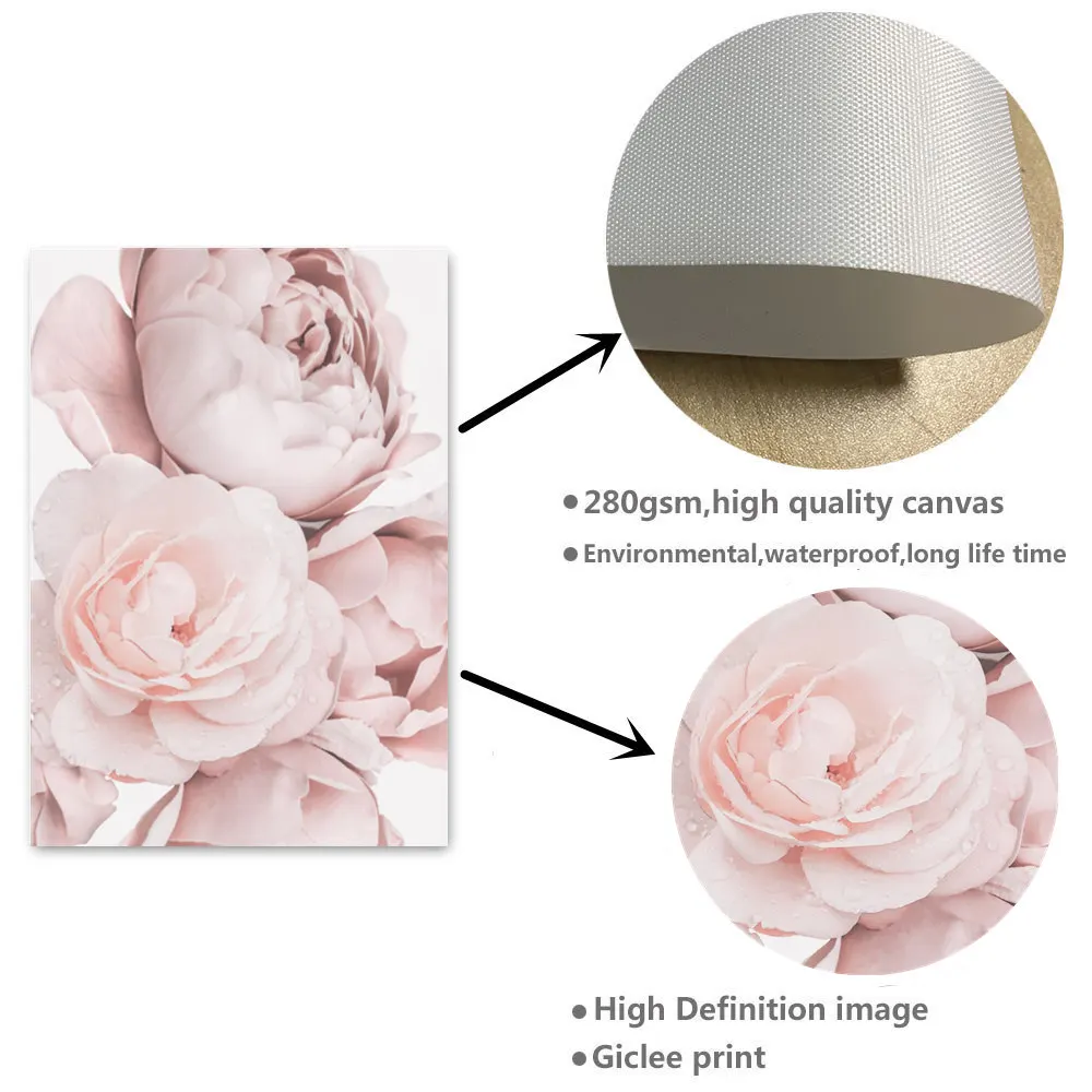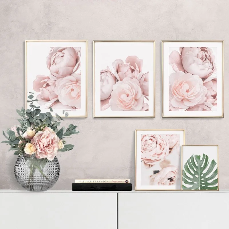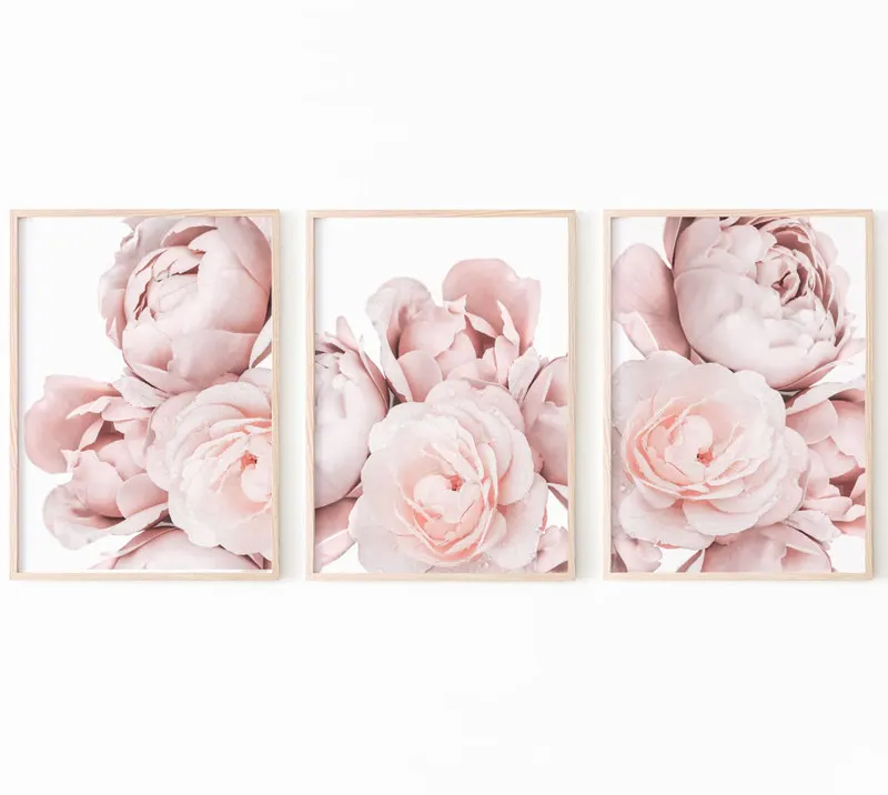 Постеры в скандинавском стиле с розовыми пионами, настенные картины, декор для комнаты, настенная живопись, модульное художественное украшение