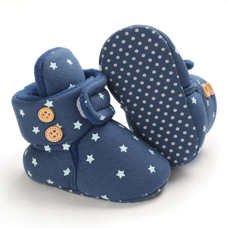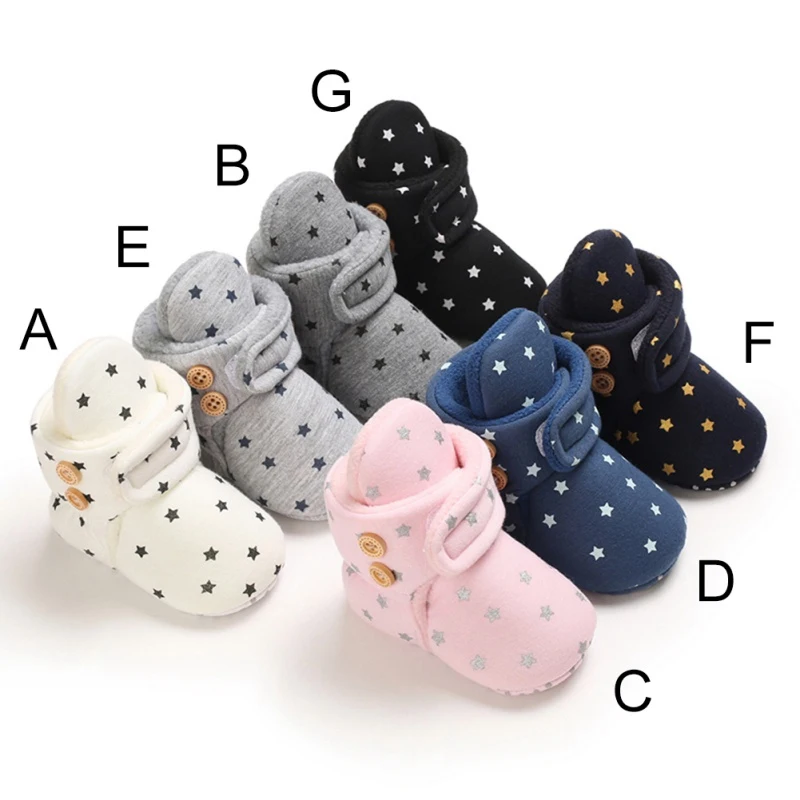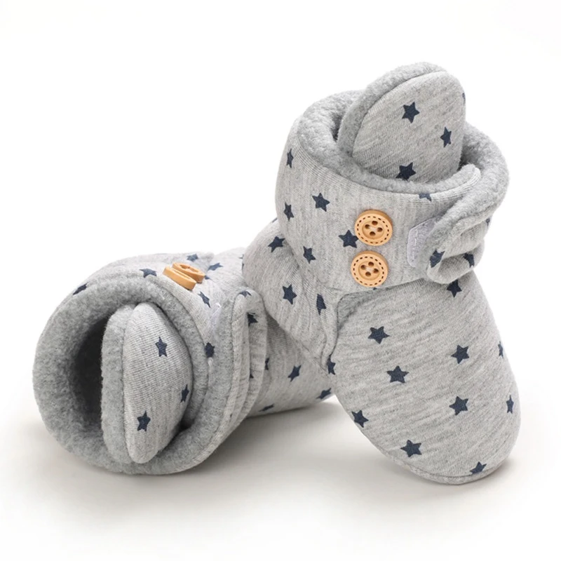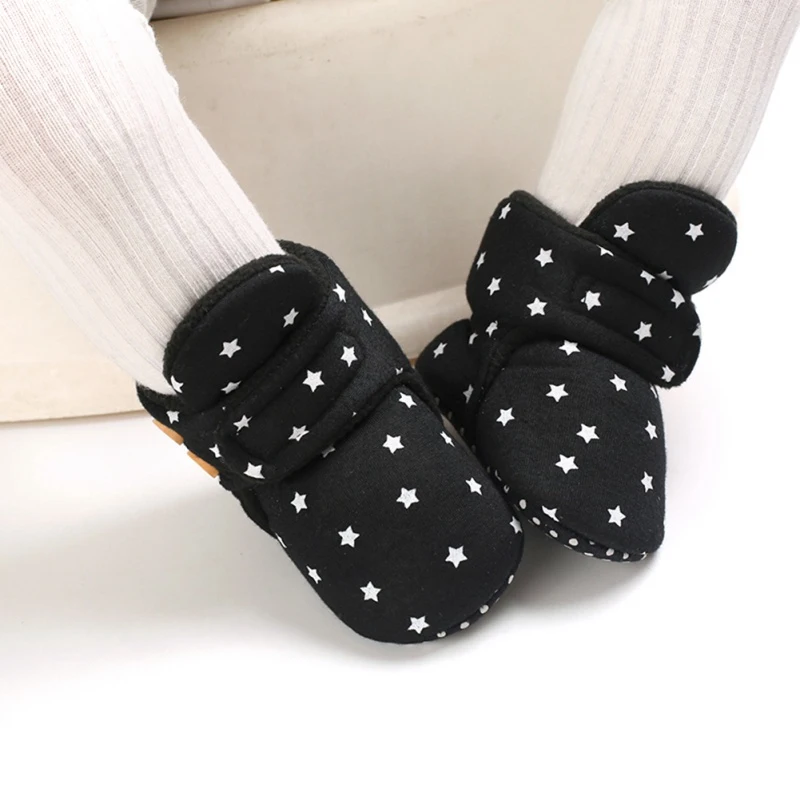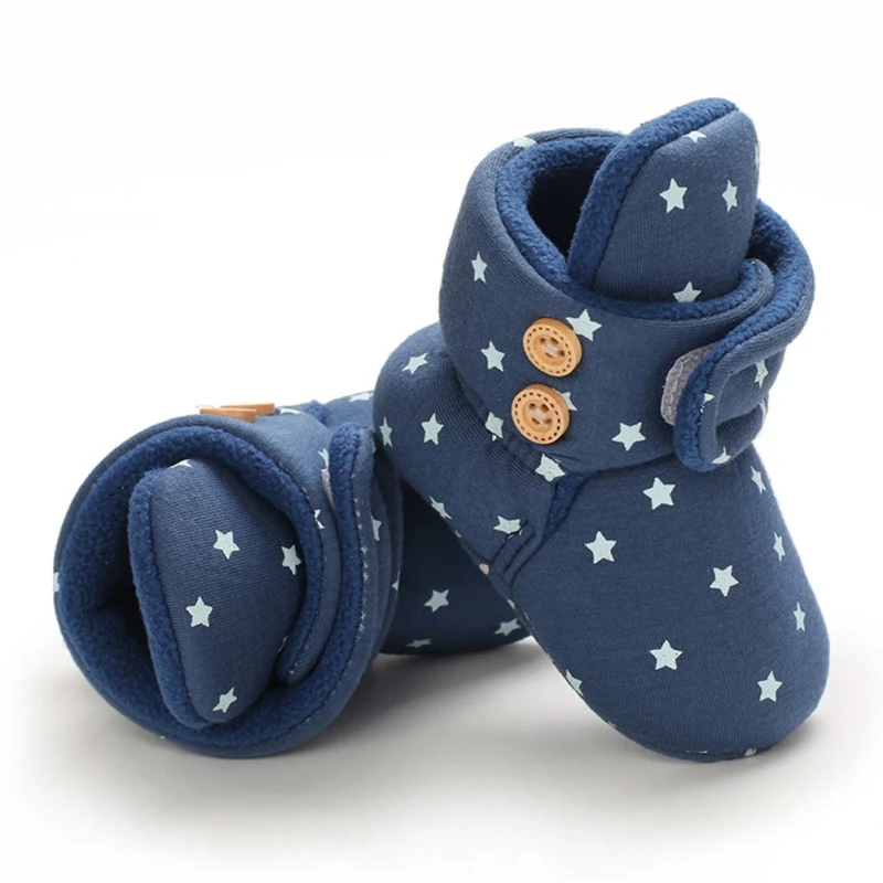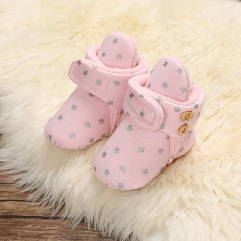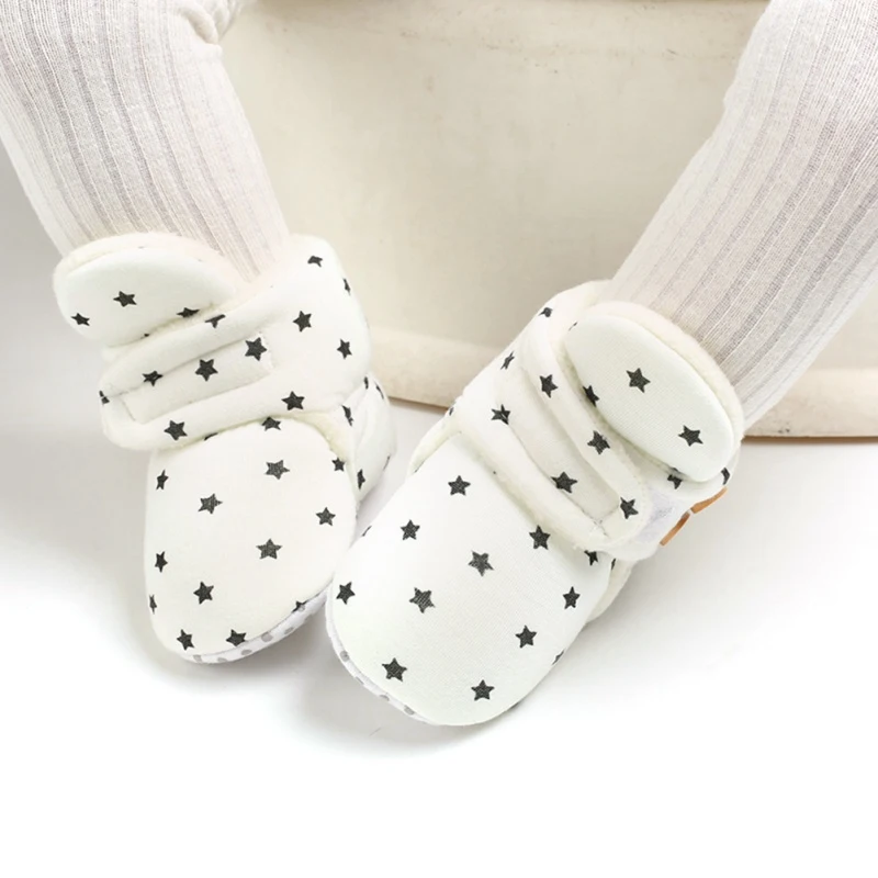 Обувь для маленьких мальчиков и девочек, пинетки с милым принтом звезд, зимние мягкие Нескользящие теплые мокасины для новорожденных, обувь для детской кроватки