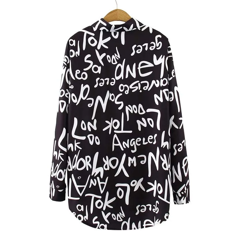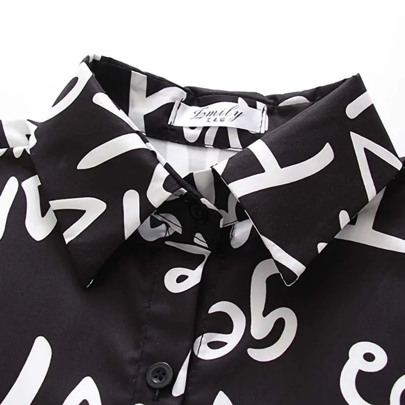 Женская блузка с принтом граффити, повседневная Осенняя блузка с отложным воротником и длинным рукавом, размера плюс