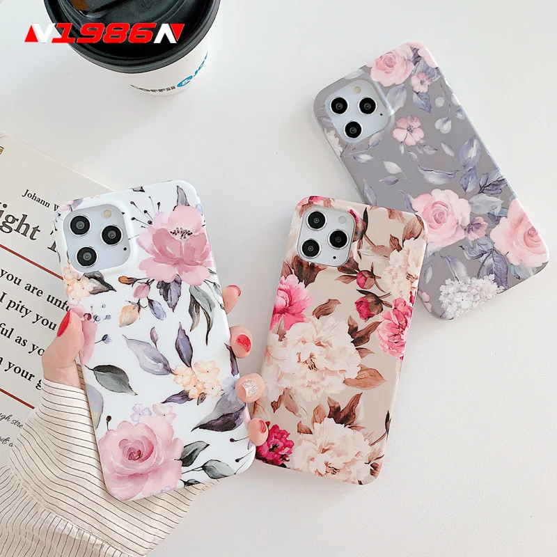 Чехол для телефона N1986N для iPhone 12 Mini 12 11 Pro Max 6 6s 7 8 Plus SE 2020, винтажный мягкий IMD чехол с розовыми цветами для iPhone 11