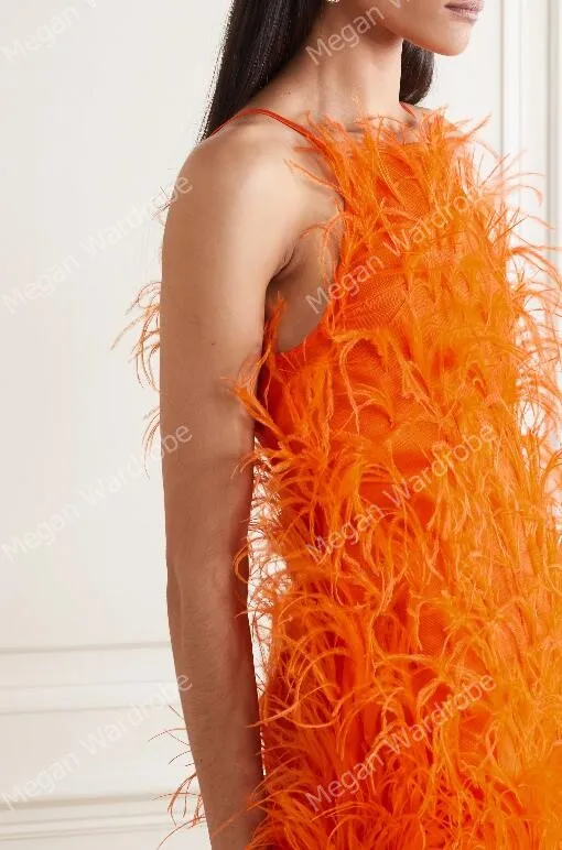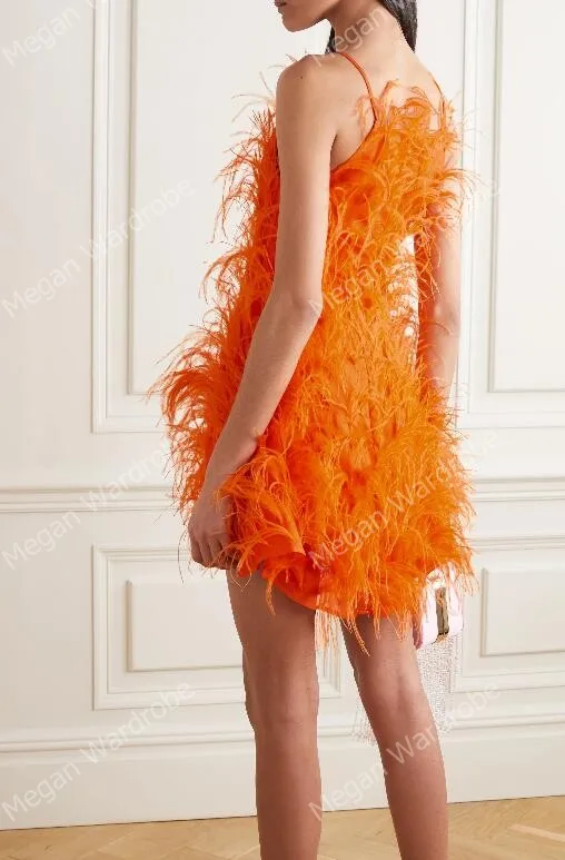 Роскошные короткие платья с перьями, женское мини-платье на бретелях-спагетти, сексуальное платье с рукавами-футляром для рождевечерние