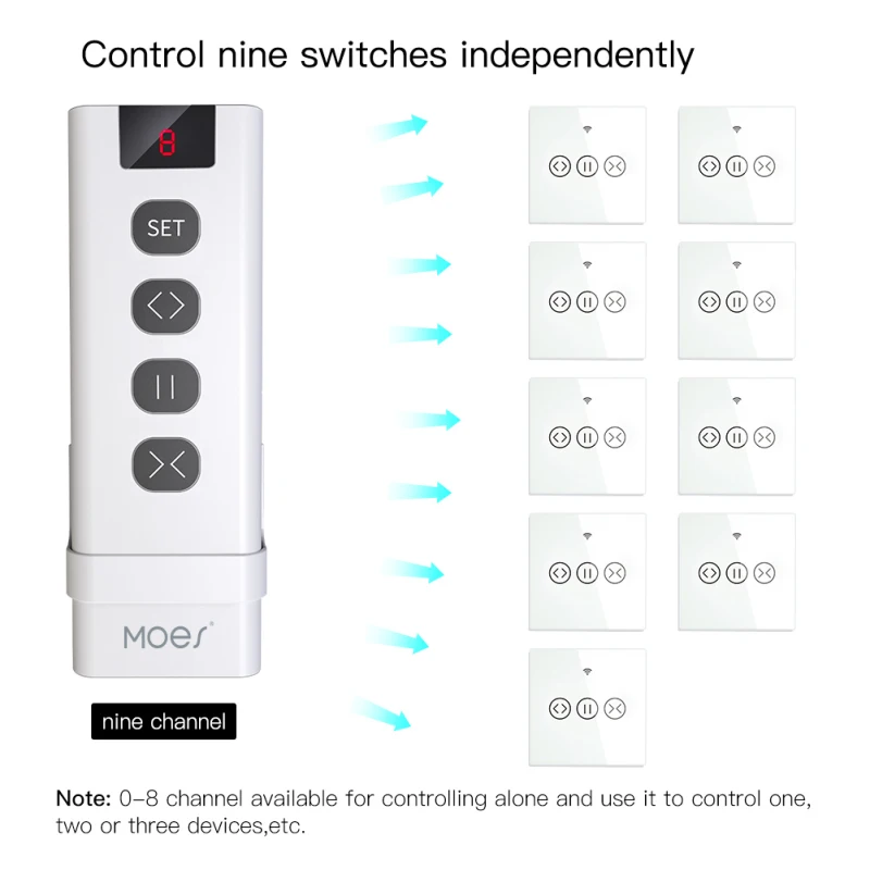 1,9 канал RF433 частота пульт дистанционного управления предназначен для отдельно контролировать наши занавес переключатель и занавес модуль автоматического включения света намного проще путь с максимальным регулируемом Кол-во Девять; легко достичь другого контроля на все шторы для дома без помех после успешного сопряжения, особенно подходит для старых.