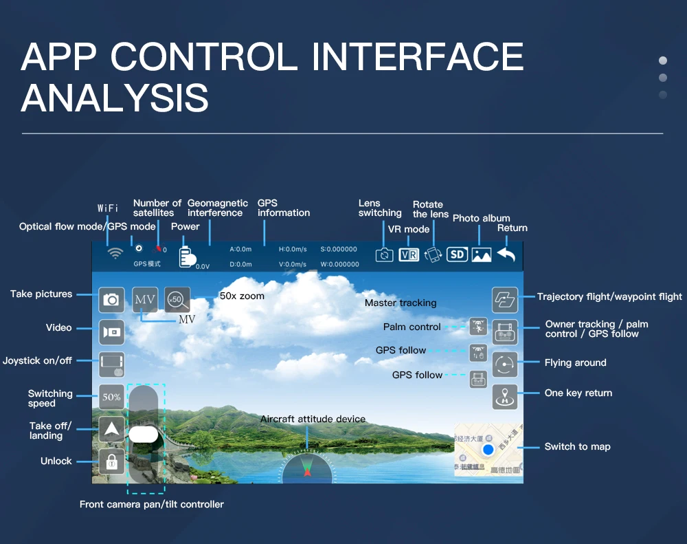 Рекомендуемая модель (1) ios Модель продукта: iPhone 6 и выше, iPhone 6 и выше Версия системы: iOS 8,0 и выше, iOS 9,0 и выше (2) андроид Модель процессора Snapdragon 630 и выше, Samsung Exynos 7420 и выше, отделение для волос Helio X25 и выше, Kirin 950 и выше Snapdragon 835 и выше, Samsung Exynos 8895 и выше, отделение для волос Helio X30 и выше, Kirin 970 и вышеОсобенности: GPS возвращается в точку взлета одной кнопкой, и низкое энергопотребление возвращается в воздух, и нет сигнала для возврата. Умное отслеживание GPS: после подключения самолета к GPS включается функция отслеживания приложения, и самолет следует на мобильный телефон. Следующее изображение: на расстоянии 1-5 м от самолета для определения объекта и выполнения автоматического последующего полета. Распознавание Жестов при съемке: в пределах 1-5 м от самолета сделайте жест камеры/жест камеры к камере. Многоточечное планирование полета маршрута: самолет автономно летает по заданному маршруту, а игрок концентрируется на стрельбе. Spot Surround: Найдите центральную точку вокруг и переместите желаемый радиус объемного звучания с помощью джойстика. Функция восстановления самолета: непрерывно щелкните значок сигнала GPS 3 раза, чтобы открыть интерфейс карты, карта показывает окончательное расстояние до самолета, широту и долготу. Функции MV: фильтры, видеоэффекты, фоновая музыка, обмен фото/видеоХарактеристики изделия: Время полета: около 25 минутВремя зарядки: около 2 ~ 3 часовРасстояние управления (свободные помехи и отсутствие окклюзии): около 1200 мРасстояние изображения (свободные помехи и отсутствие окклюзии):800 м (двойная антенна)Расстояние изображения (свободные помехи и отсутствие окклюзии): 300 м (одиночная антенна)GPS следуй за мной: 30 мИзображение следуй за мной: 1-5 мФокусное расстояние: 50-кратный зумСъемка жестами руки/реконструирование видео: 1-5 мРежим SD: 1208*720 (приложение) режим HD: 2048*1080 (приложение)Версия 4KРазрешение видео 4K:4096*3072PРазрешение фото 4K: 4096*3072PКамера нижнего вида: 1280*720pЧастота кадров: 25 кадров в секундуЕмкость интеллектуальной литиевой батареи: 7,6 В 2600 мАчОбъемная поверхность с фиксированной точкойАнти-тряска для аэрофотосъемкиОбмен фото/видеоДвойной режим GPS/ГЛОНАСС Разрешение видео 1080P:1920x1080p Разрешение фото 1080P:1920x1080p Разрешение видео 4K:2048x1080 Разрешение фото 4K:4096*3072P Камера нижнего вида: 1280*720p Частота кадров: 25 кадров в секундуПосылка ходит:1 х Квадрокоптер