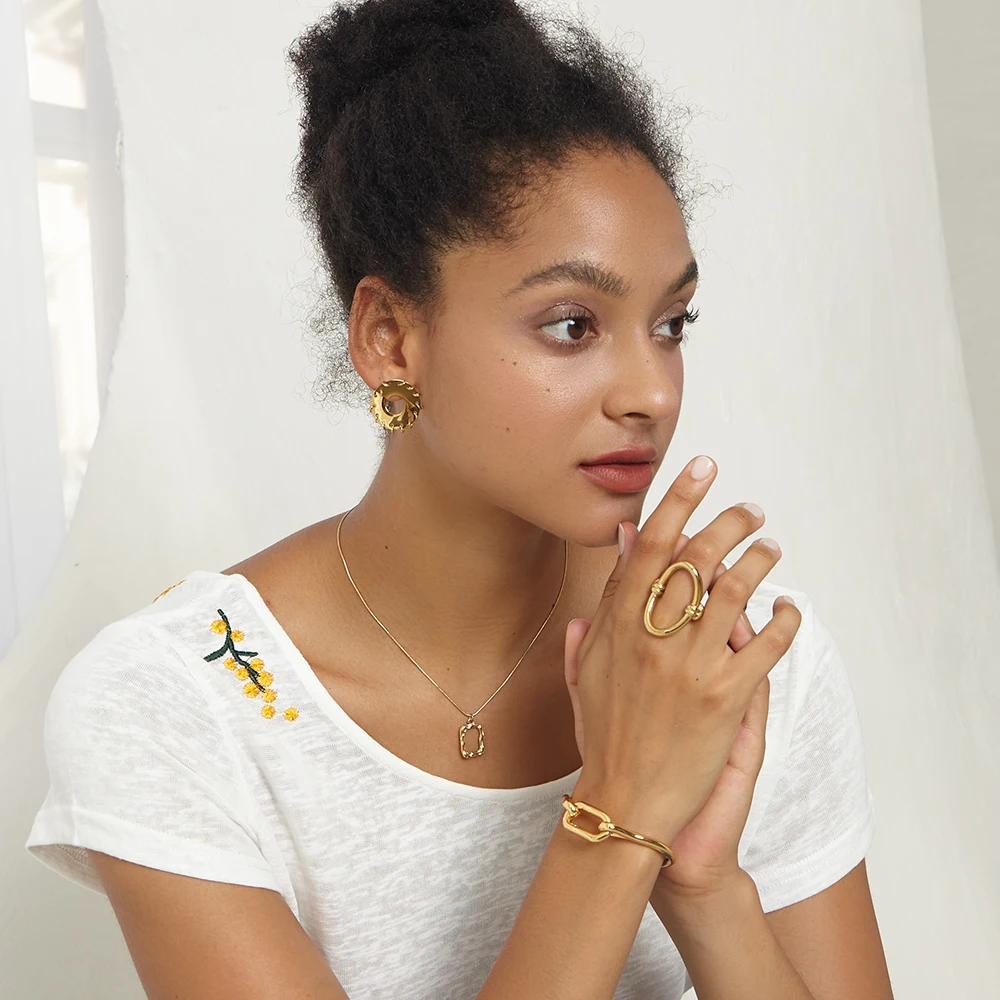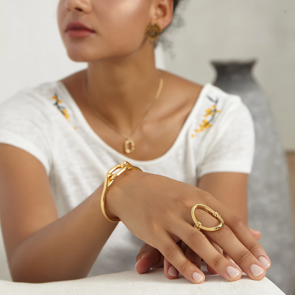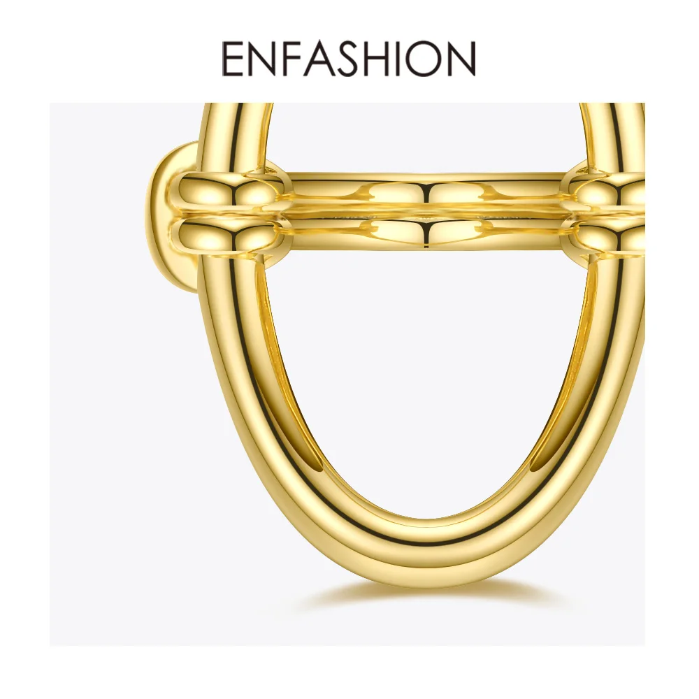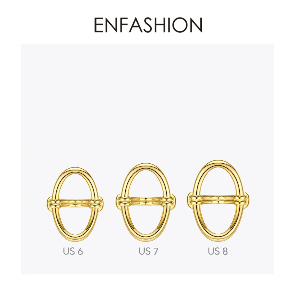 Женское кольцо с изогнутыми кольцами ENFASHION R204038, кольцо с овальным отверстием из нержавеющей стали золотого цвета, Подарочная бижутерия для вечеринок