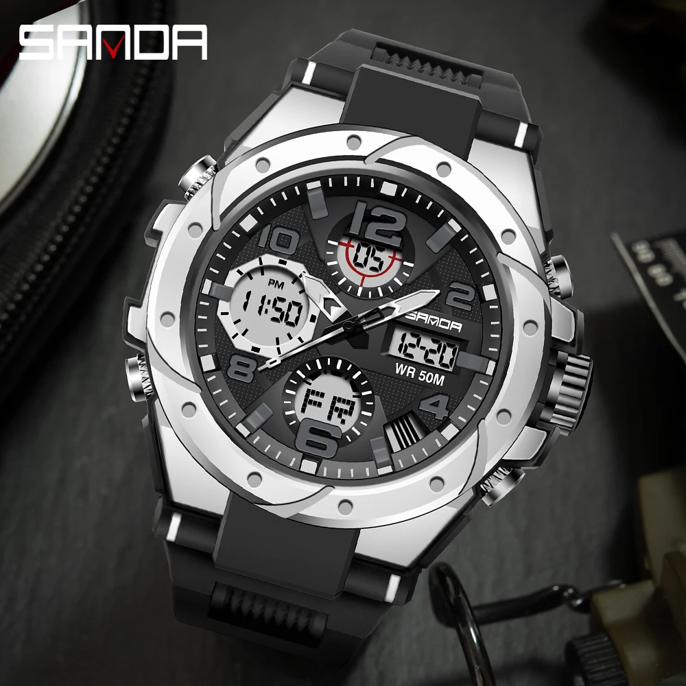 Часы наручные SANDA мужские электронные в стиле милитари, спортивные водонепроницаемые Топ Shock, роскошные Цифровые, 2021