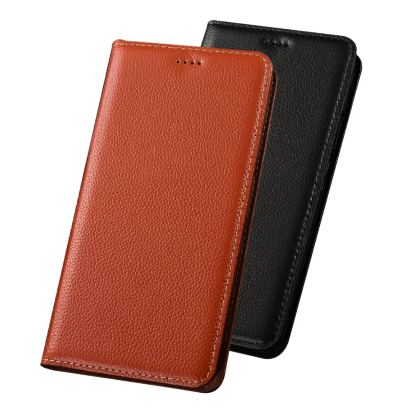 Чехол-книжка из натуральной кожи с зернистой текстурой личи для тел...