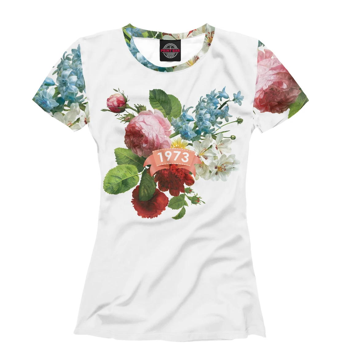 Футболка женская 1973 год, букет летних цветов (День рождения)