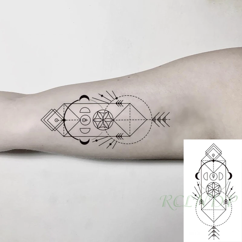 Водонепроницаемая Временная тату-наклейка полукруглая стрела четырехсторонняя Геометрическая тату флэш-тату поддельные татуировки искусство для мужчин женщин мужчин