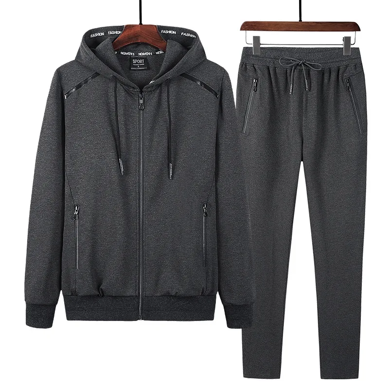 Костюм спортивный мужской зимний из 2 предметов, толстовка с капюшоном, штаны, спортивный костюм в стиле хип-хоп, одежда большого размера