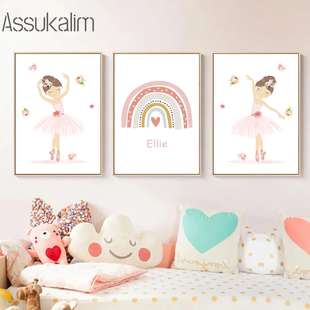 Детская Живопись балерина Холст плакат цветок настенный принт розов...