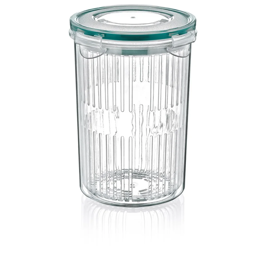 Безвредная для пищевых продуктов Bpa, объем 1,5 л, герметичность воздуха и жидкости, прокладка и система блокировки с запахами. Продукты ароматизируют и сохраняют свежесть. Может также использоваться в качестве травления через фильтр внутри. Использование микроwaveable cover! Безопасная для посудомоечной машины, -25 / + 95 является чрезвычайно термостойким, перерабатываемым изделием, изготовленным