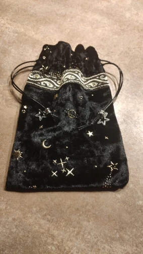 Отличный Чехол, мои карты Таро идеально подходят. Сумка из мягкого бархата. Акцентные части были раздельными, и мне пришлось одеть их сам на веревочки, но я не против. Очень доволен им.