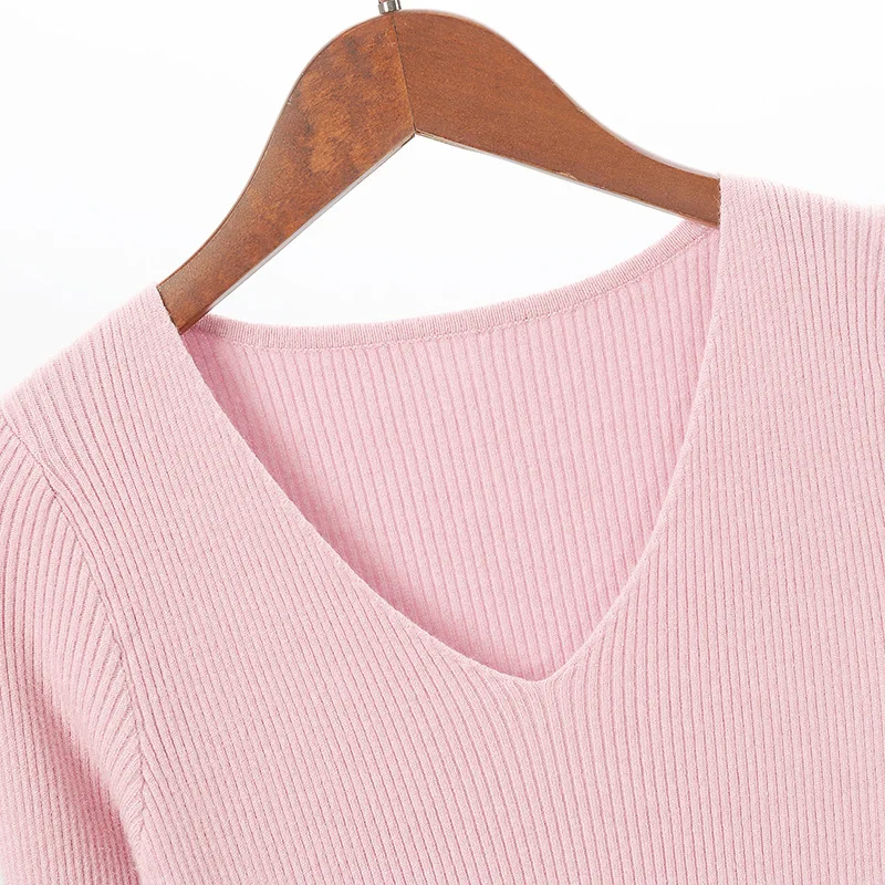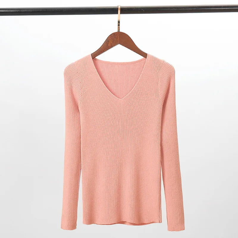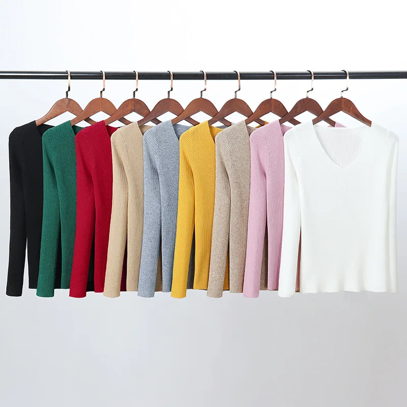Женский вязаный свитер, топ, теплая зимняя одежда, футболка с длинным рукавом, v-образный вырез, полный пуловер, высокое качество, 2020, новинка, много цветов