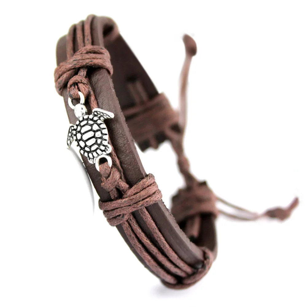 Браслет унисекс кожаный с подвеской в виде черепахи, пчелы, пчелы
