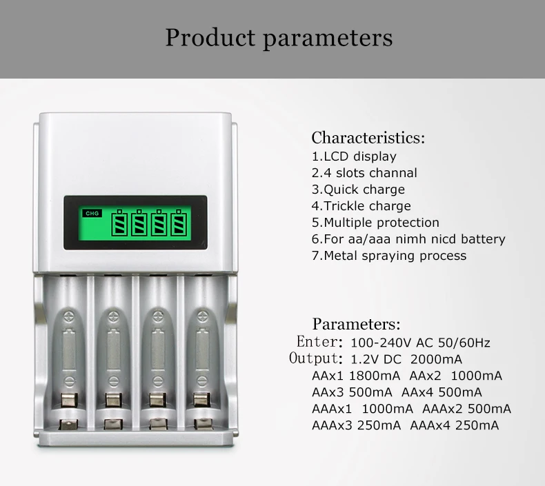 1. Это зарядное устройство может заряжать 1-4 шт. AA/AAA Ni-MH/Ni-Cd аккумуляторные батареи ЖК-дисплей.
