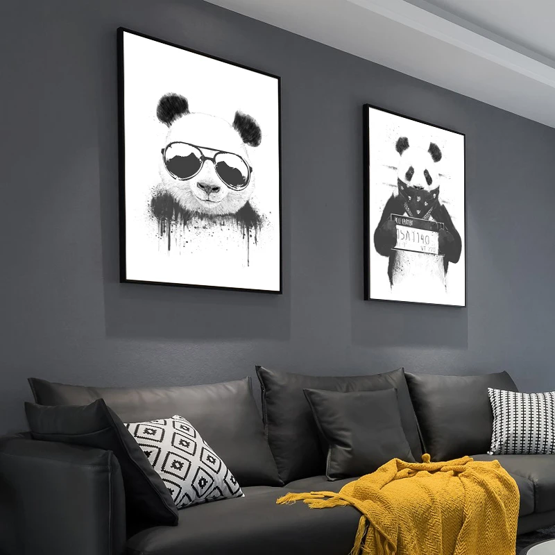Холщовые животные плакаты абстрактная Панда в очках Холст Искусство черно-белые декоративные фотообои Декор