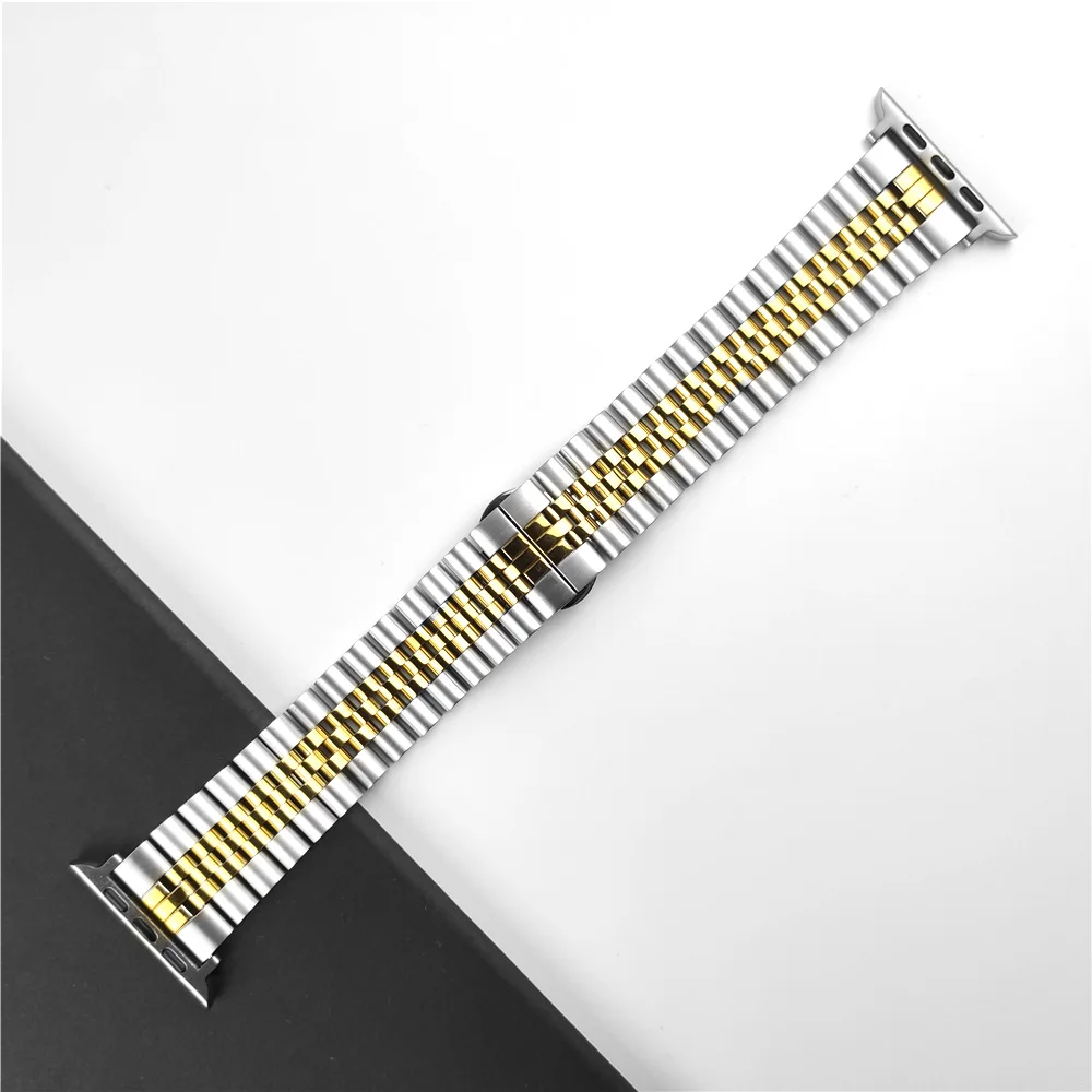 Браслет из нержавеющей стали для Apple Watch SE 6, 7, ремешок 44 мм, 42 мм, 40 мм, 38 мм, деловой металлический ремешок для iWatch 54321