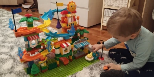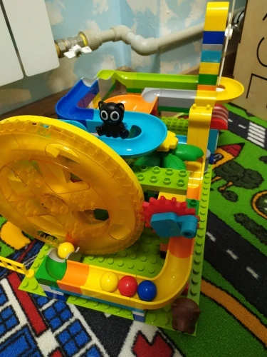 Ужас, а не конструктор, все эти горки с зазорами, шарики не катаются, потому что нет уклона, все постоянно отваливается. Пока собрали пачку валерьянки надо выпить. Не советую.